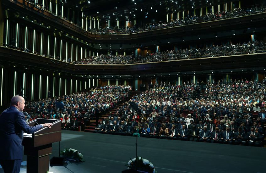 Cumhurbaşkanı Erdoğan: “İlhamını geçmişten alan parlak bir geleceği inşa etmek, Türkiye’nin yükseköğretimde ulaştığı seviyeyi yukarılara çıkarmak için kararlı bir şekilde çalışıyoruz.”