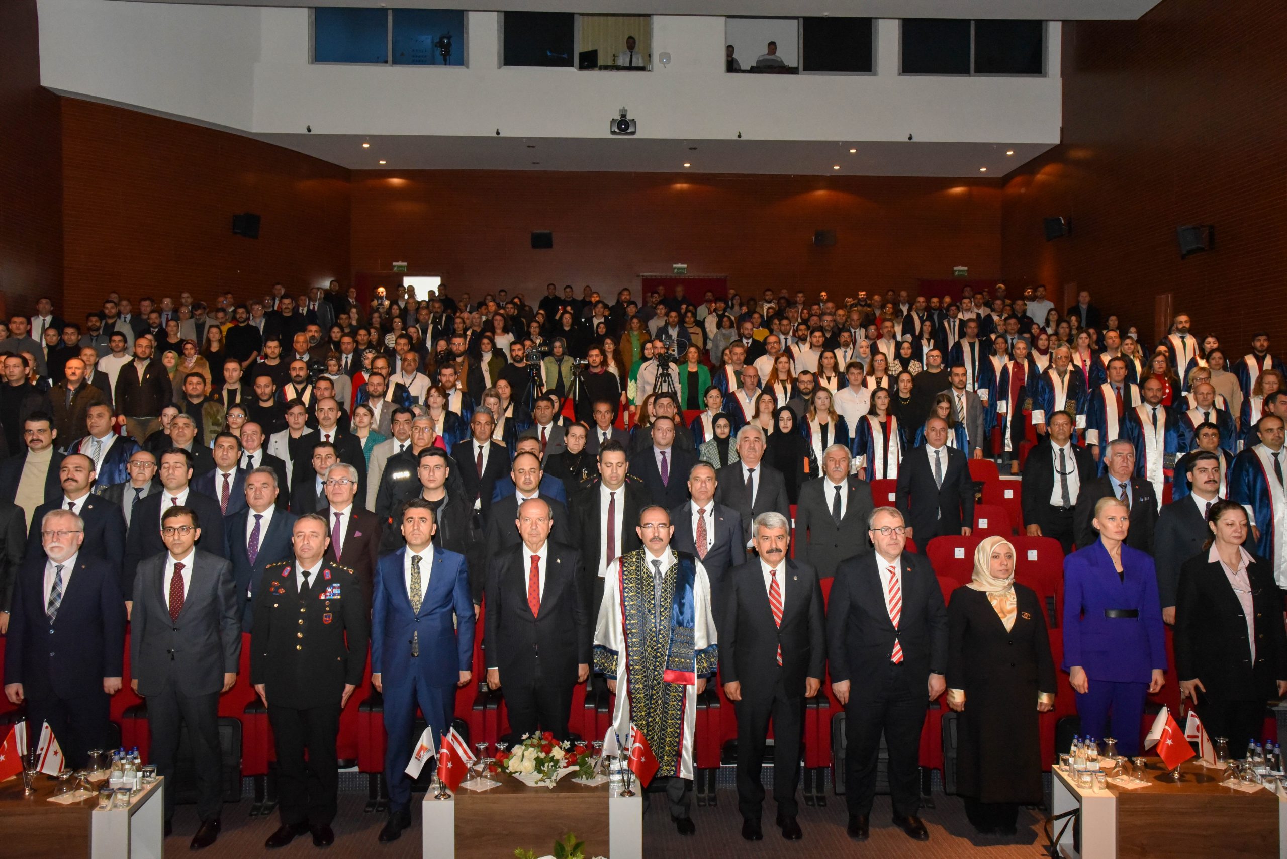 Kuzey Kıbrıs Türk Cumhuriyeti Cumhurbaşkanı Sayın Ersin Tatar’ın teşrifleriyle gerçekleşen törende Sayın Tatar’a fahri doktora tevdi edildi. Akademik yılı açılış dersi Prof. Dr. Sadettin Hülagü tarafından verilen tören yoğun katılımla gerçekleşti.
