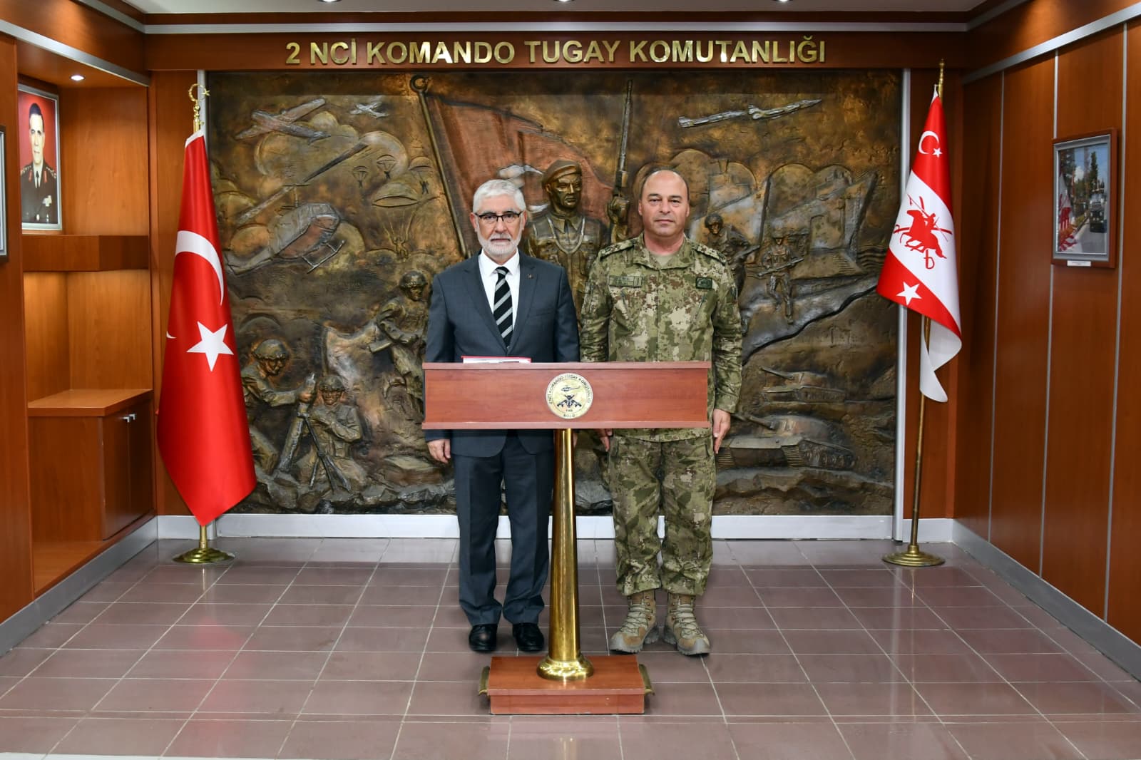 Üniversitemiz Rektörü Prof. Dr. Faruk Yiğit, misafirperverliklerinden ötürü Bolu 2. Tugay ve Garnizon Komutanı Tuğgeneral Emrullah Öztürk’e teşekkür etti.