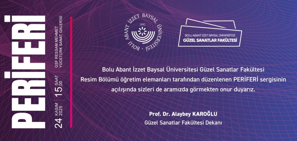 Güzel Sanatlar Fakültesi Resim Bölümü öğretim elemanları tarafından düzenlenen “PERİFERİ” adlı karma sergi, 24 Kasım 2025 Pazartesi günü saat 15.00’te GSF Ressam Mehmet Yücetürk Sanat Galerisi’nde açılacaktır.