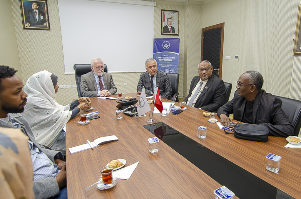 Vadi Nil Üniversitesi Rektörü Prof. Dr. Hassan Alhaj Hamd Hassan Ali başkanlığında ikili görüşmelerde bulunmak ve iş birliği anlaşmaları imzalamak için Üniversitemizde bulunan Sudan Heyeti Üniversitemiz Rektörü Prof. Dr. Mustafa Alişarlı’yı makamında ziyaret etti.