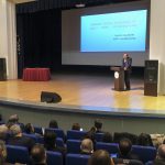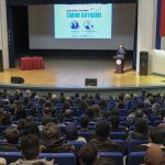 Bolu Tarım ve Orman İl Müdürü Zekeriya Ar, “Ülkemizde Tarım Eğitimi ve Tarım Meslek Liseleri” konulu sunum yaptı. Tarım Meslek Lisesi ve ardından Veteriner Fakültesinden mezun olup 30 yılı aşkın süredir kamuda görev yaptığını belirten Ar, eğitim ve kariyer anılarından örnekler vererek, ülkemizdeki tarım eğitimi ve tarım meslek liselerinin durumunu öğrencilerle paylaştı ve özetle “Ziraat Meslek Liseleri’ne kurum sınavlarında başarılı olanlar girebiliyordu. Bu okullar parasız ve yatılı eğitim veren kurumlardı. Mecburi hizmet şartıyla eğitim alınıyordu. Yani mezun olduktan sonra mecburi hizmet dönemi vardı. Bu sebeple her bakanlık kendi teknik personelini kendisi yetiştiriyordu o yıllarda. Ben de bu koşullarda ziraat meslek lisesine girdim. Eğitim-öğretim tamamen uygulamaya dayalıydı. Mezun olan her öğrencimiz tarımın her alanında, bu işin tüm yükünü çekerek eğitim görüyordu. İşçiler ne yapıyorsa öğrenciler de bunu yapıyordu. Her öğrencinin 20 metrekare toprağı olurdu. Toprak hazırlığından ürünün hasadına kadar her çalışmayla öğrenci uğraşırdı. Mezun olan her öğrenci tarım ve hayvancılığı tümüyle öğrenmiş oluyordu.” diye anlattı.
