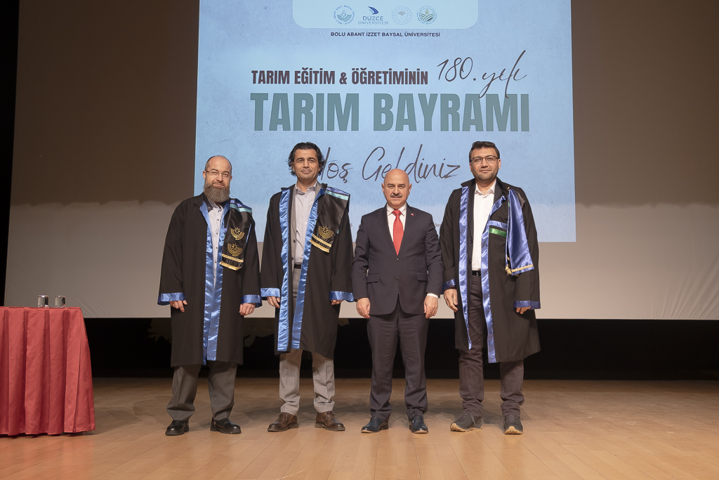 Düzce Üniversitesi Rektörü Prof. Dr. Nedim Sözbir ise, bugün burada tarım eğitimi ve öğretiminin 180 yıllık geçmişini, bilimsel yönünü ve geleceği dönük vizyonunu değerlendiriyoruz. Tarım; gıda güvenliğinin teminatı, sürdürülebilir kalkınmanın anahtarı ve toplumsal refahın vazgeçilmez unsurlarından biridir. Her iki üniversitemiz de bilgi üretme, nitelikli insan kaynağı yetiştirme ve bilimsel çıktıları sahayla buluşturma görevi kapsamında, tarım sektörünün gelişimine önemli destekler sunmaktadır. Geleneksel bilgi ve modern teknolojiyi bir araya getiren bu anlayış, tarımın geleceğinin şekillenmesinde en güçlü uzuvlardan biridir.” dedi.