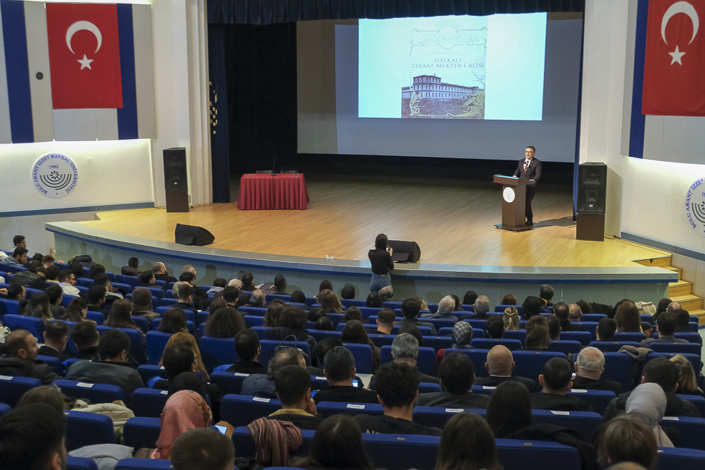 Saygı duruşu ve İstiklal Marşı’nın okunmasıyla başlayan programın açılış konuşmasını Üniversitemiz Ziraat Fakültesi Dekanı Prof. Dr. Mustafa İmren yaptı. Tarım eğitiminin, tarımın geleceğini belirleyen en temel güçlerden biri olduğunu belirten İmren, “Tarım, insanlık tarihi kadar eski bir faaliyet olmakla birlikte, günümüzde gıda güvenliği, iklim değişikliğiyle mücadele, sürdürülebilirlik ve kırsal kalkınma gibi küresel sorunların merkezinde yer alan stratejik bir sektördür. Bu yönüyle tarım artık yalnızca bir üretim faaliyeti değil, bilgi, teknoloji ve eğitim temelli bir kalkınma alanıdır.” diye konuştu.