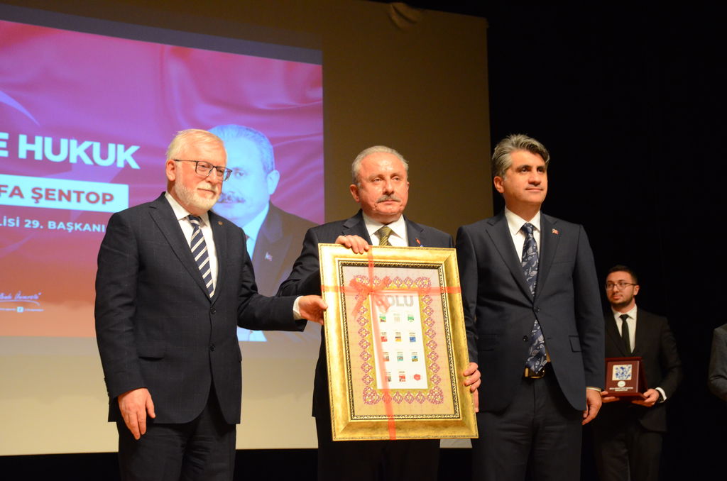 Soru-cevap bölümünün ardından söyleşi tamamlandı. TBMM 29’uncu Başkanı ve Cumhurbaşkanlığı Yüksek İstişare Kurulu Üyesi Prof. Dr. Mustafa Şentop’a Vali Aydın ve Rektör Alişarlı tarafından teşekkür plaketi takdim edildi; Bolu ve ayrı ayrı 8 ilçesinin akademik ve kültürel zenginliğini ortaya çıkaran Bolu Araştırmaları ve Halk Kültürü Sempozyumlarının büyük özveriyle hazırlanan afişlerinin PTT tarafından bastırılıp özgün bir koleksiyon haline getirilen pul serisi, Prof. Dr. Mustafa Şentop’a armağan edildi.