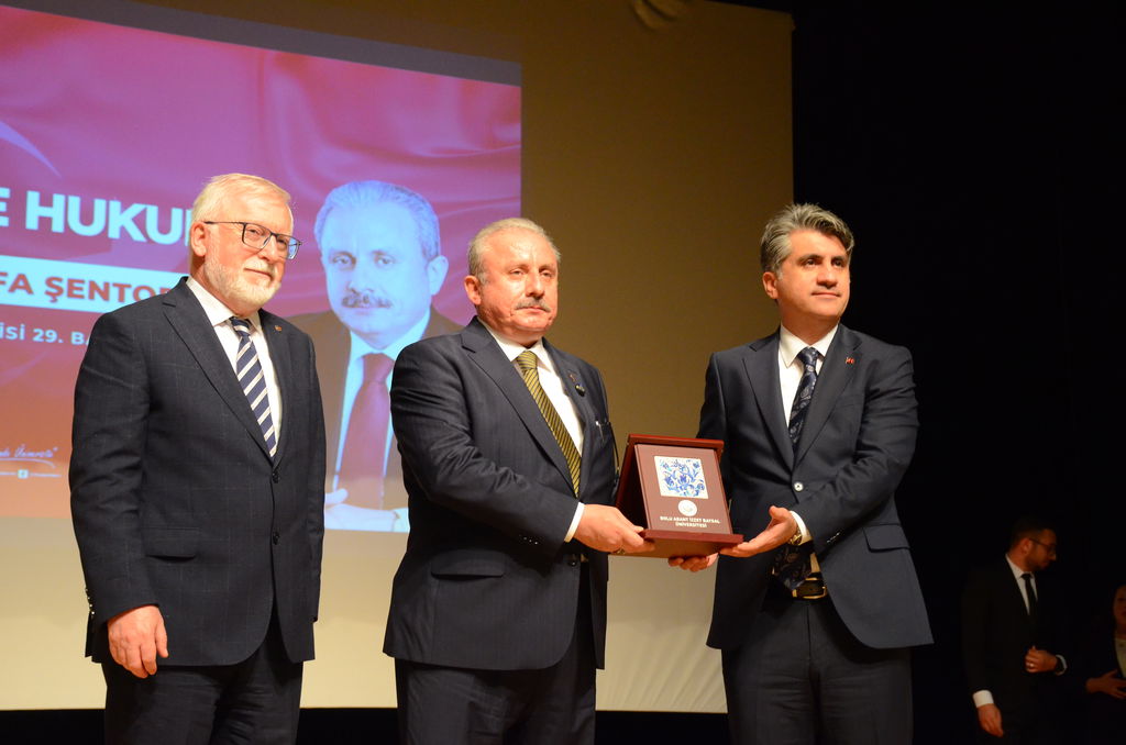 İlahiyat Fakültesi Ek Binası Temel Atma Töreni’ne katılmak üzere Üniversitemize teşrif eden TBMM 29’uncu Başkanı ve Cumhurbaşkanlığı Yüksek İstişare Kurulu Üyesi Prof. Dr. Mustafa Şentop, burada yapılan törenin ardından Rektörlüğümüz tarafından düzenlenen “Anayasa ve Hukuk” konulu söyleşinin konuğu oldu.