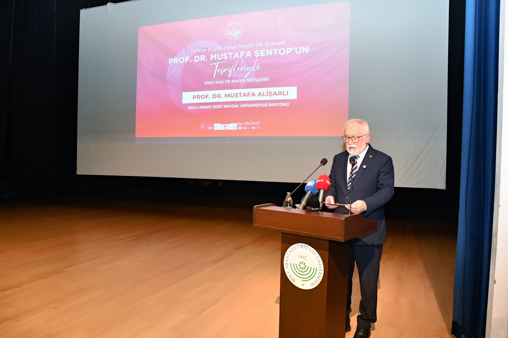 Bilgiye, bilime ve hukuka dair anlamlı bir buluşmaya ev sahipliği yaptığımızı vurgulayan Rektör Alişarlı, ülkemizin yetiştirdiği önemli hukukçulardan Prof. Dr. Mustafa Şentop’u Üniversitemizde ağırlamaktan duyduğu memnuniyeti ifade etti.