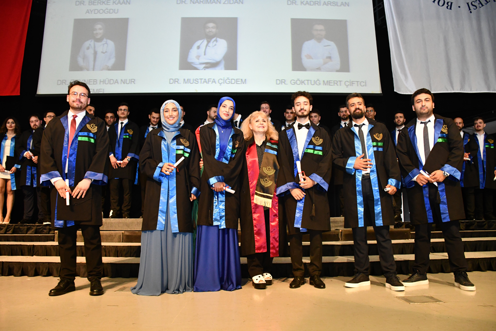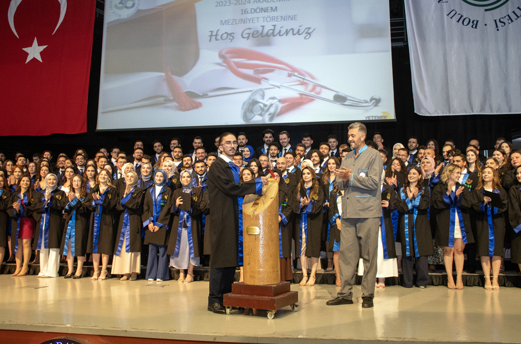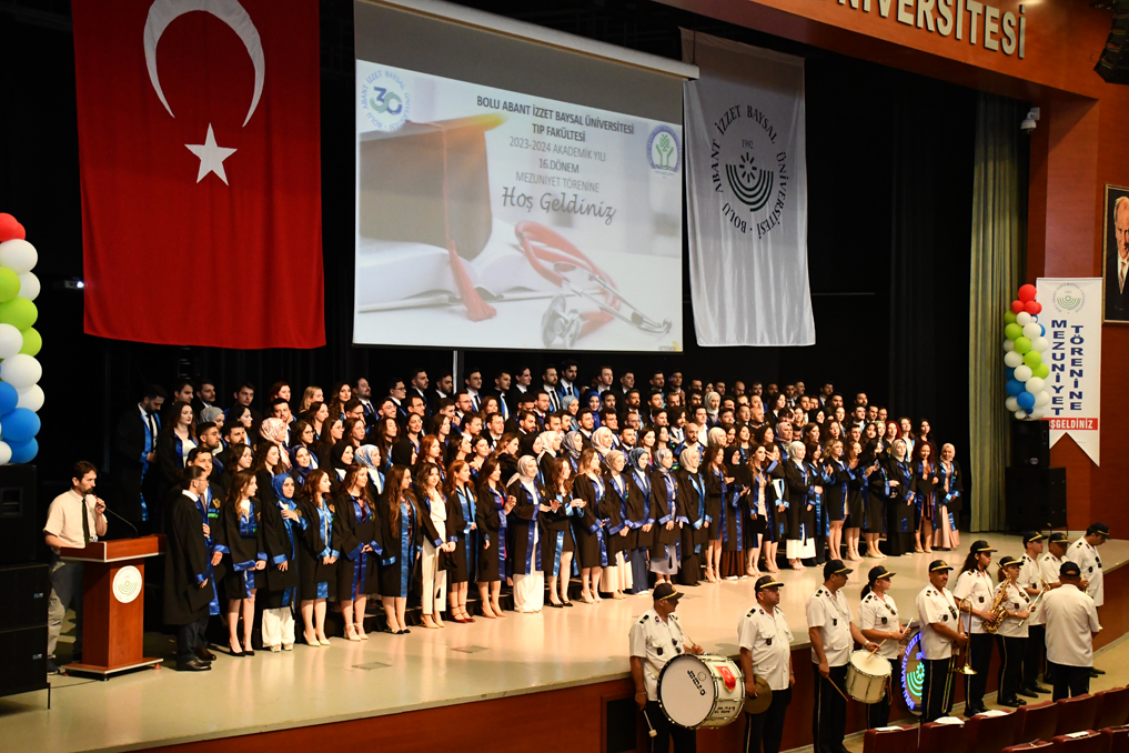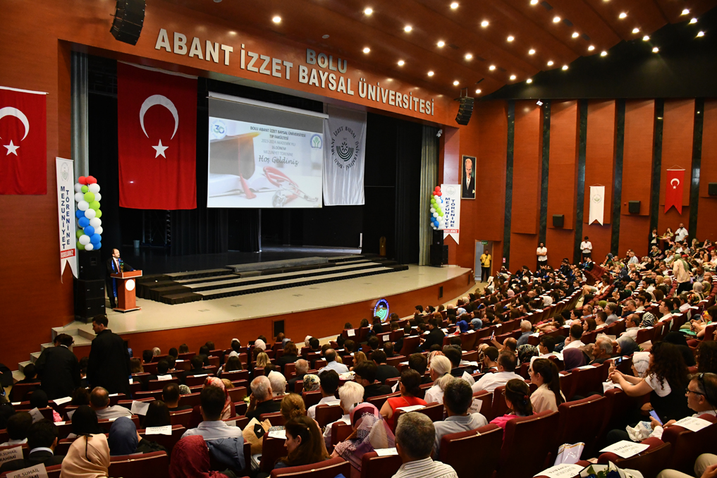 Bolu Abant İzzet Baysal Üniversitesi (BAİBÜ) Tıp Fakültesi mezuniyet töreni Bordo Salon’da gerçekleştirildi. Törene Bolu Valisi Erkan Kılıç, BAİBÜ Rektörü Prof. Dr. Mustafa Alişarlı, Amasya Üniversitesi Rektörü Prof. Dr. Ahmet Hakkı Turabi, BAİBÜ Rektör Yardımcısı Prof. Dr. Aydın Him, Bolu Belediye Başkan Yardımcısı Süleyman Can, dekanlar, akademisyenler, öğrenciler ve öğrenci aileleri katıldı.