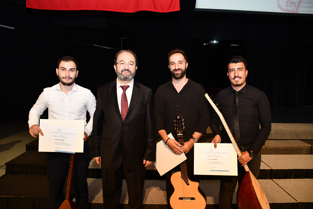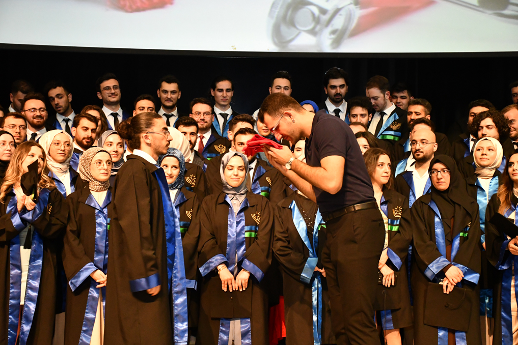 Kılıç’ın sözlerini bitirmesinin ardından Vefa Anlağan, İshak Yönev ve Yusuf Eren tarafından Türk Halk Müziği konseri verildi. Konser bitiminde BAİBÜ Tıp Fakültesi Dekanı Prof. Dr. Gürkan Öztürk konseri veren Vefa Anlağan, İshak Yönev ve Yusuf Eren’e teşekkür belgesi verdi. Akabinde mezun olan öğrencilere mezuniyet belgeleri verildi ve mezun olan öğrenciler hekimlik yemini edip kep fırlattı.
