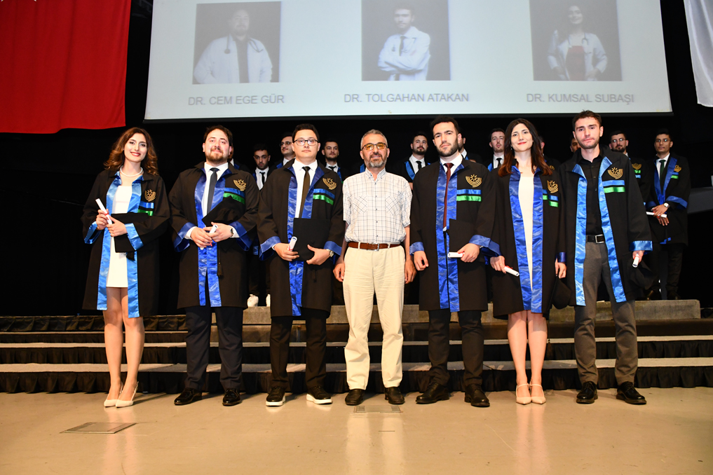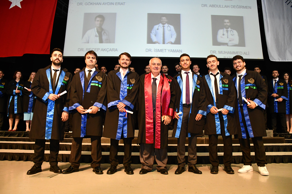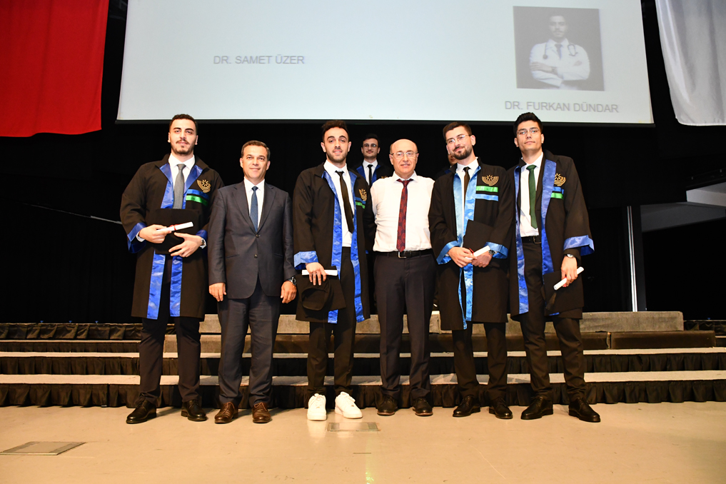 Tören saygı duruşu ve İstiklal Marşı ile başladı. Törende açılış konuşmasını fakülte birincisi Nizamettin Taşdemir yaptı. Konuşmasına katılımcılara teşekkür ederek başlayan Taşdemir, yaşadığı gururu katılımcılarla paylaştı. Hekim olmasında emeği geçen herkese teşekkür eden Taşdemir mezuniyet kütüğüne dönem birinciliği künyesini çaktı. Tören, eğitimde devamlığı simgeleyen Türk Bayrağı ve BAİBÜ flamasının devir teslimi, mezun öğrencilerin 4. sınıf öğrencilerine bayrak ve flamayı devretmesiyle devam etti.
