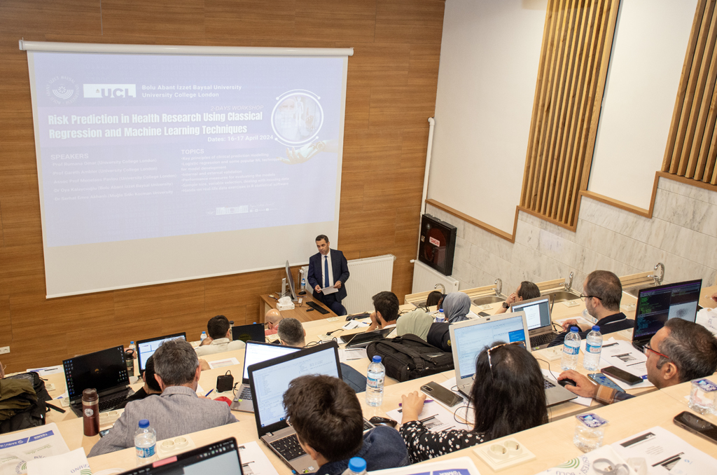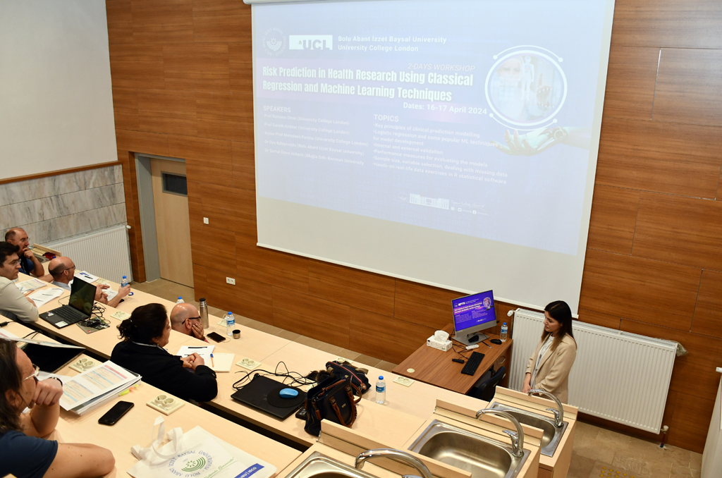 Çalıştay, geleneksel regresyon modelleri ile geliştirilen risk tahmin modelleri ve sağlıkta dijitalleşmeyle birlikte klinik risk tahmininde önemi artan makine öğrenimi tekniklerinin kullanımını içeriyor. University College London 2023/24 Global Engagement Fund kapsamında desteklenen çalıştayda, Türkiye ve University College London (UCL) araştırmacıları arasında akademik iş birliğinin kurulması hedefleniyor.