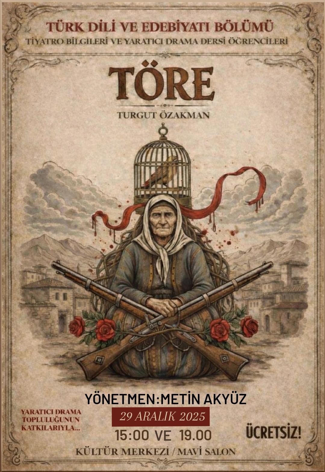 Tiyatro Duyurusu: “TÖRE” 23 Aralık 2025 Etkinlik Bilgileri 📍 Yer: Kültür Merkezi / Mavi Salon 📅 Tarih: 29 Aralık 2025 🕒 Saat: 15.00 ve 19.00 🎬 Yönetmen: Metin Akyüz 🎫 Giriş: Ücretsiz Mevcut makalenin kısa URL'si : https://ajanda.ibu.edu.tr/pzes