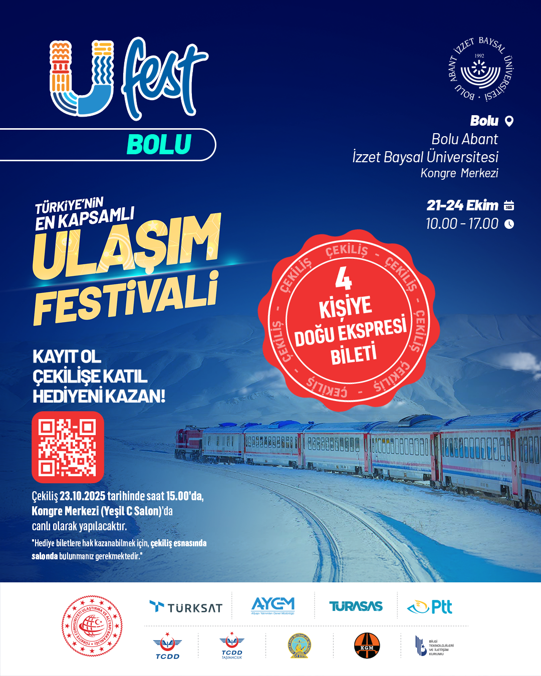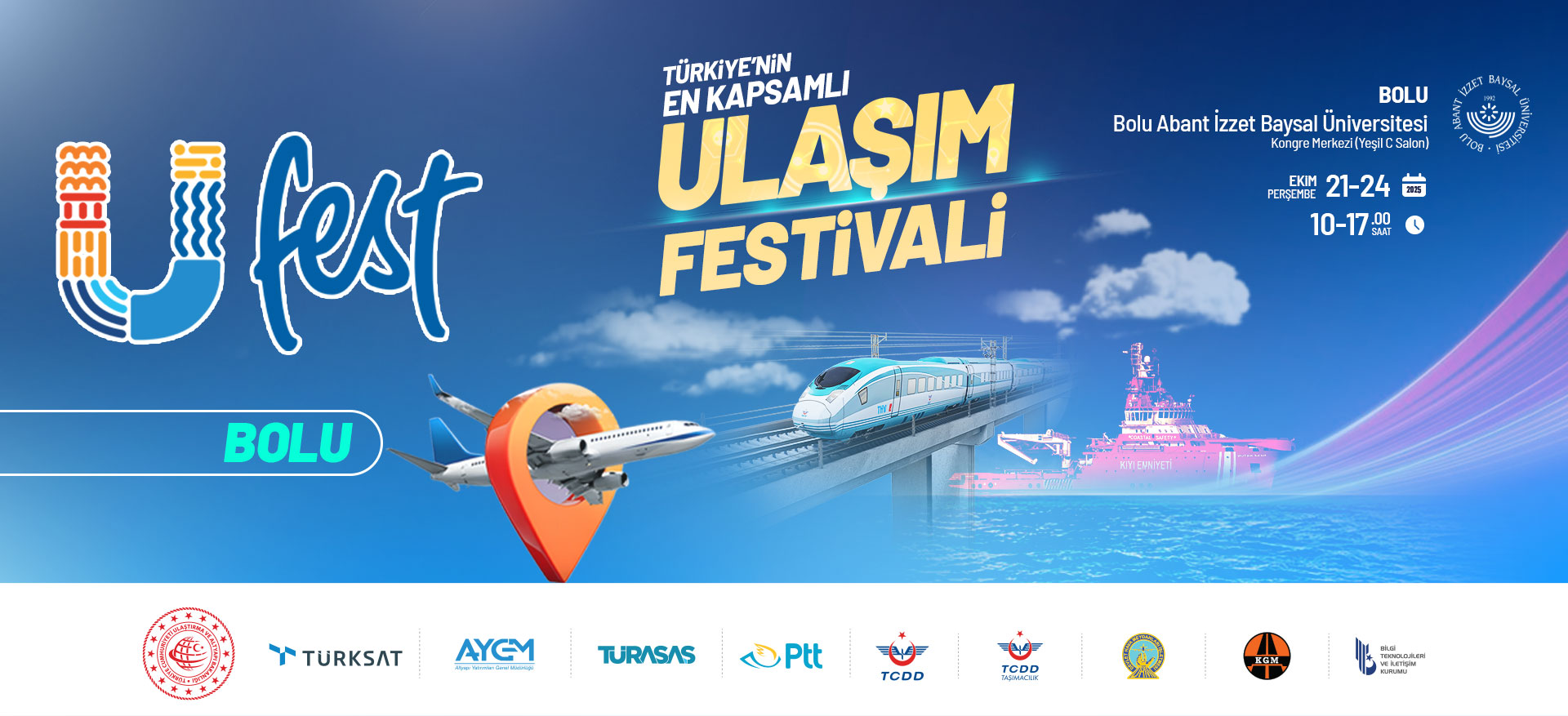 Bolu Abant İzzet Baysal Üniversitesi ev sahipliğinde düzenlenecek olan Ufest Bolu – Ulaşım Festivali, 21-24 Ekim tarihleri arasında ziyaretçilerini ağırlıyor!