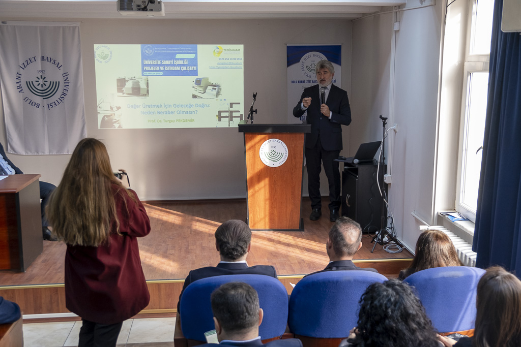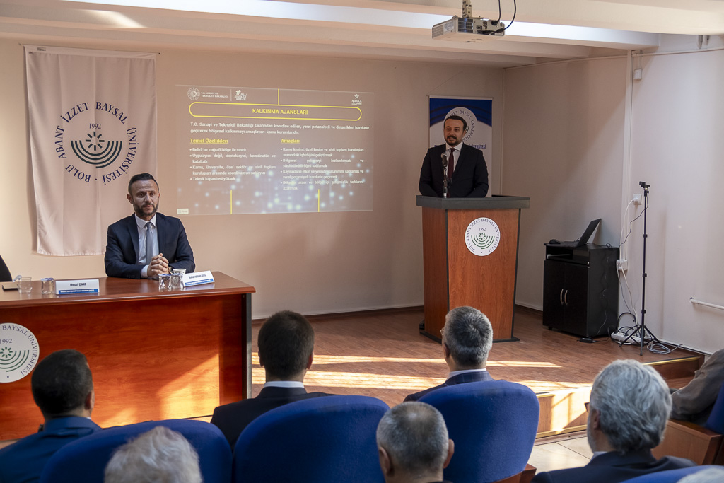 Rektör Yardımcısı Prof. Dr. Coşkun Karaca ise yaptığı konuşmada, Bolu Abant İzzet Baysal Üniversitesi, bir paydaş ve üniversite-sanayi iş birliğine işlerlik kazandıracak önemli bir kurum olarak beklentilerinin neler olduğunu anlattı.