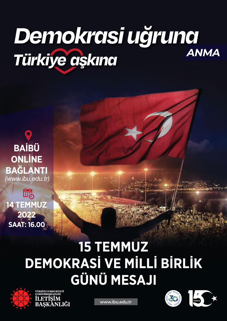 - 15 Temmuz Demokrasi ve Milli Birlik Günü Mesajı – Anma Mesajı /14 Temmuz Saat:10.00