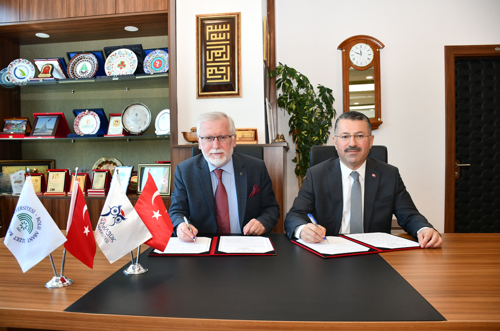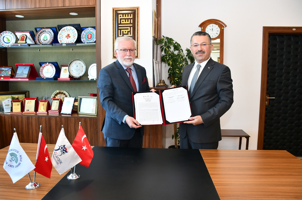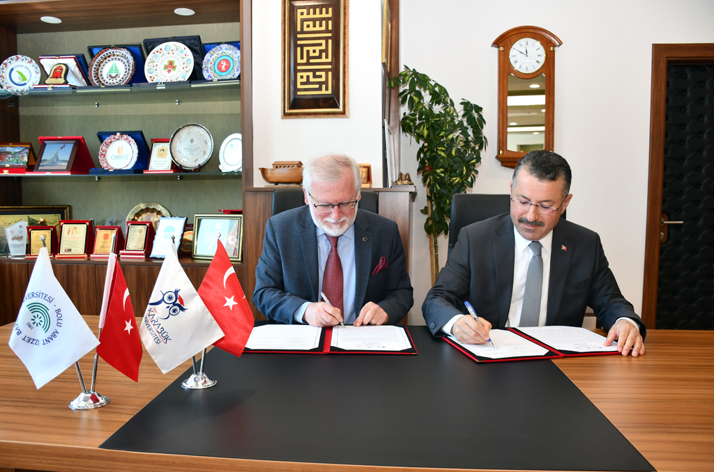 Üniversitemiz ile Karabük Üniversitesi arasında Üniversitemiz Rektörlüğü Makam Odasında iş birliği protokolleri imzalandı.