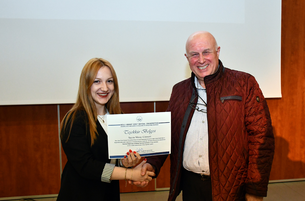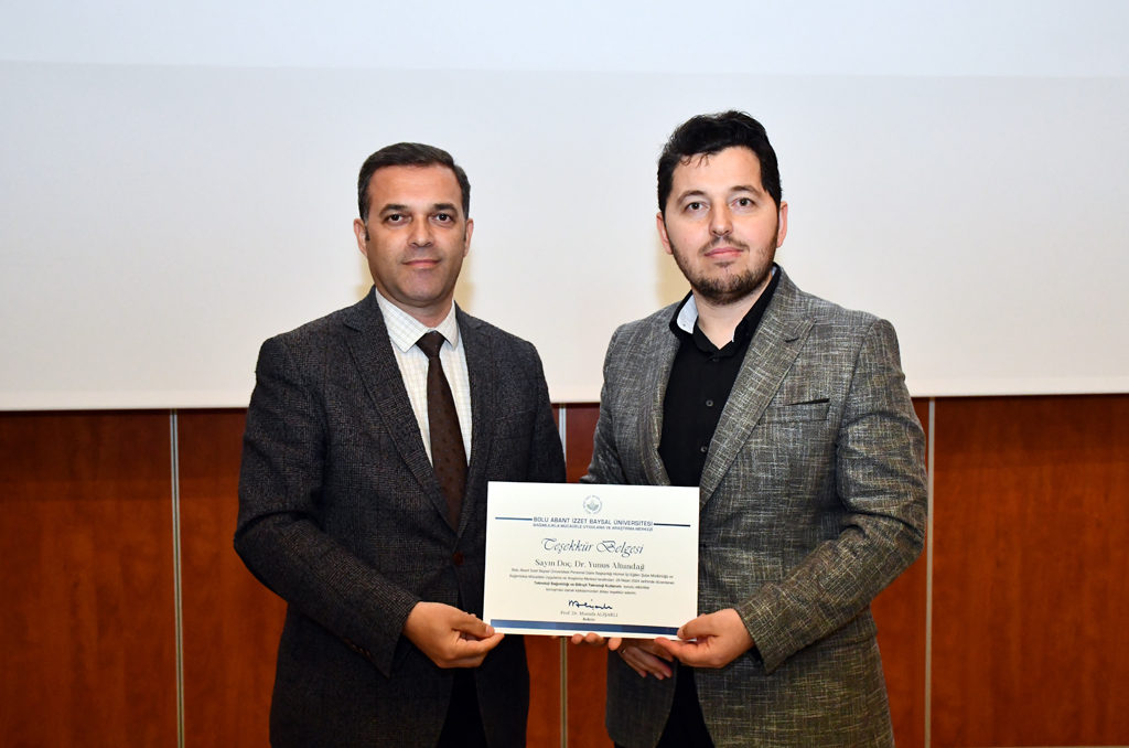 Eğitimde Bağımlılıkla Mücadele Araştırma ve Uygulama Merkezi Yönetim Kurulu Üyesi Doç. Dr. Yunus Altundağ “Teknoloji Yerinde Yeterince” başlıklı sunum yaptı. Sunumun ardından Bağımlılıkla Mücadele Araştırma ve Uygulama Merkezi Müdür Yardımcısı Prof. Dr. Sebahat Gücük ve Bağımlılıkla Mücadele Araştırma ve Uygulama Merkezi Yönetim Kurulu Üyesi Doç. Dr. Yunus Altundağ’a teşekkür belgesi verildi.