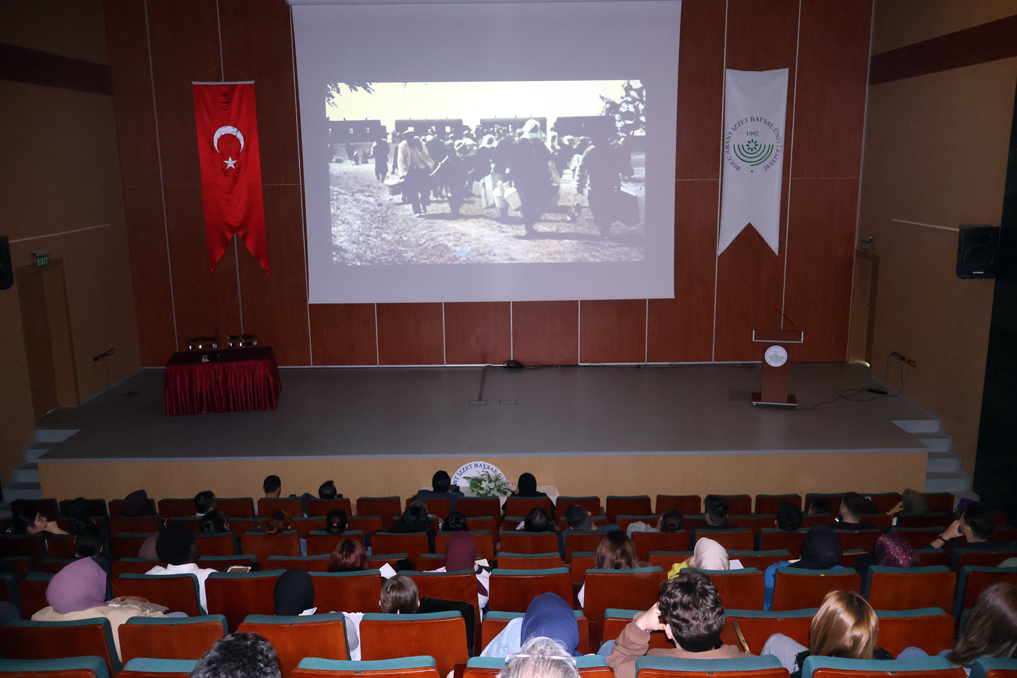 Ardından programın esas bölümüne geçildi. Katılımcılara Doç. Dr. Ertuğrul Karakuş’un yayın danışmanlığını yaptığı ve Mehmet Türker’in yönettiği “Bulgaristan’ın Susturulamayan Kalemi: Ömer Osman Erendoruk” belgeseli izlettirildi.