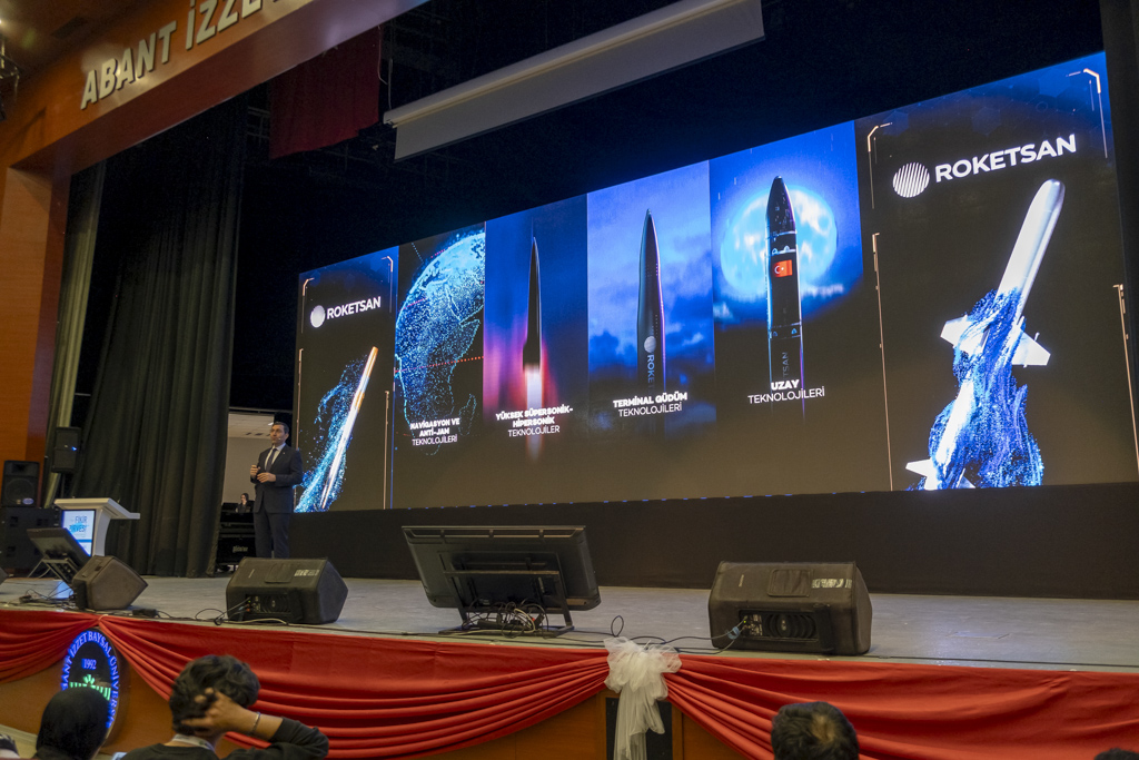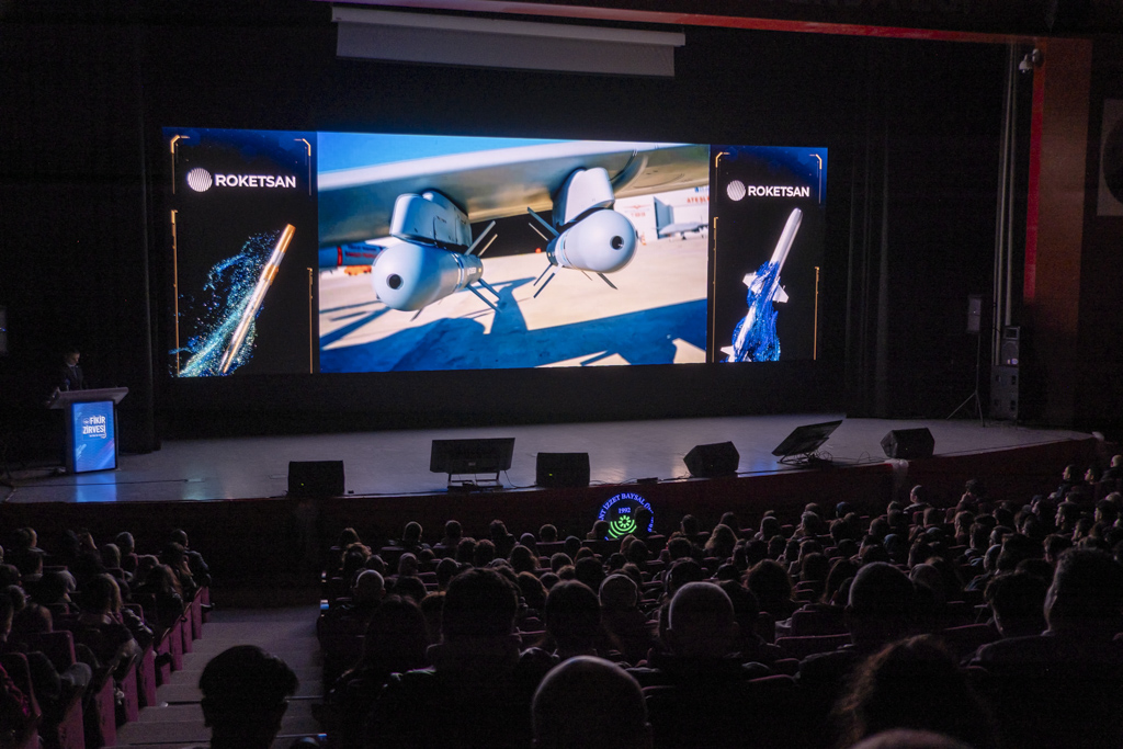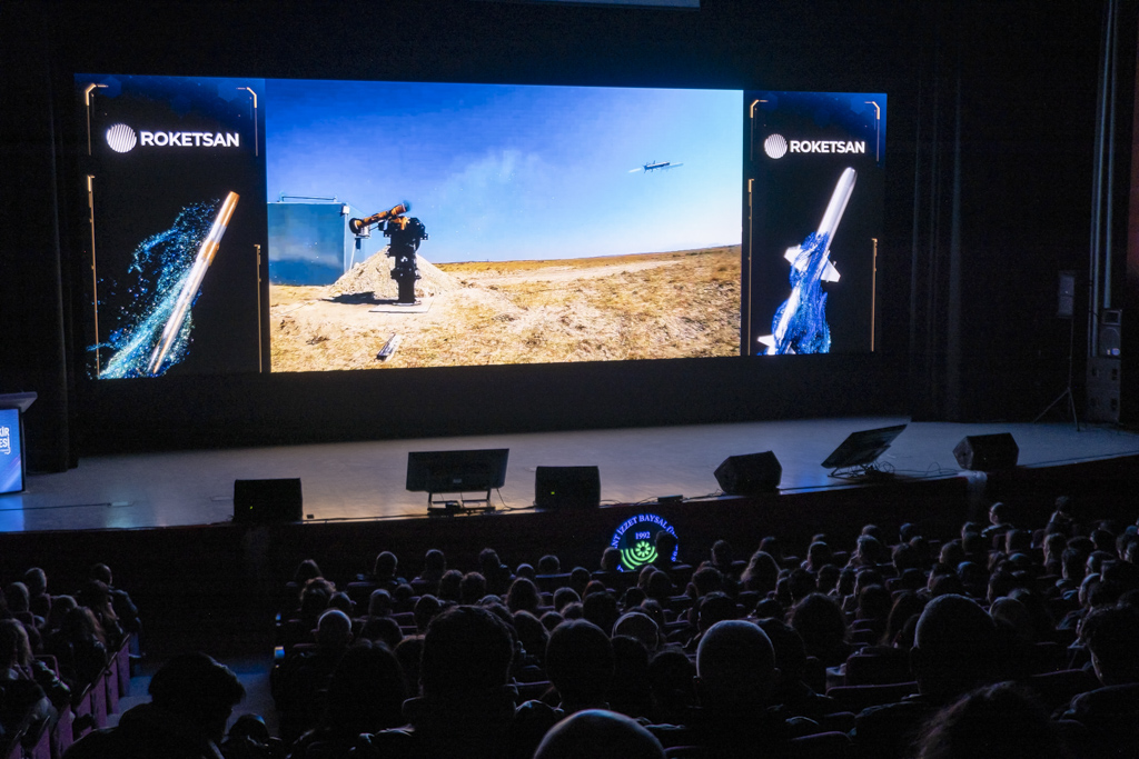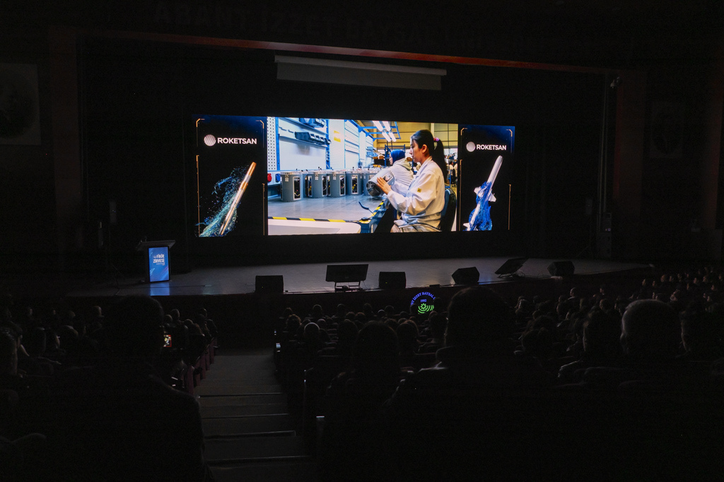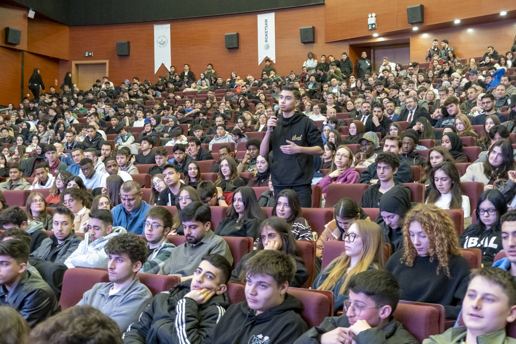 ROKETSAN tanıtım filminin gösterilmesinin ardından ROKETSAN Genel Müdürü Murat İkinci, savunma sanayisinin önemi ve ROKETSAN’ın vizyonu hakkında gençleri bilgilendirici bir sunum gerçekleştirdi.