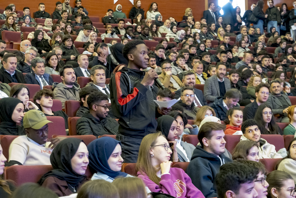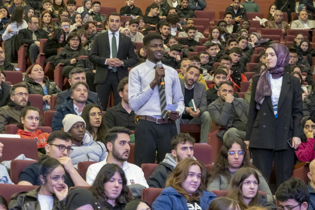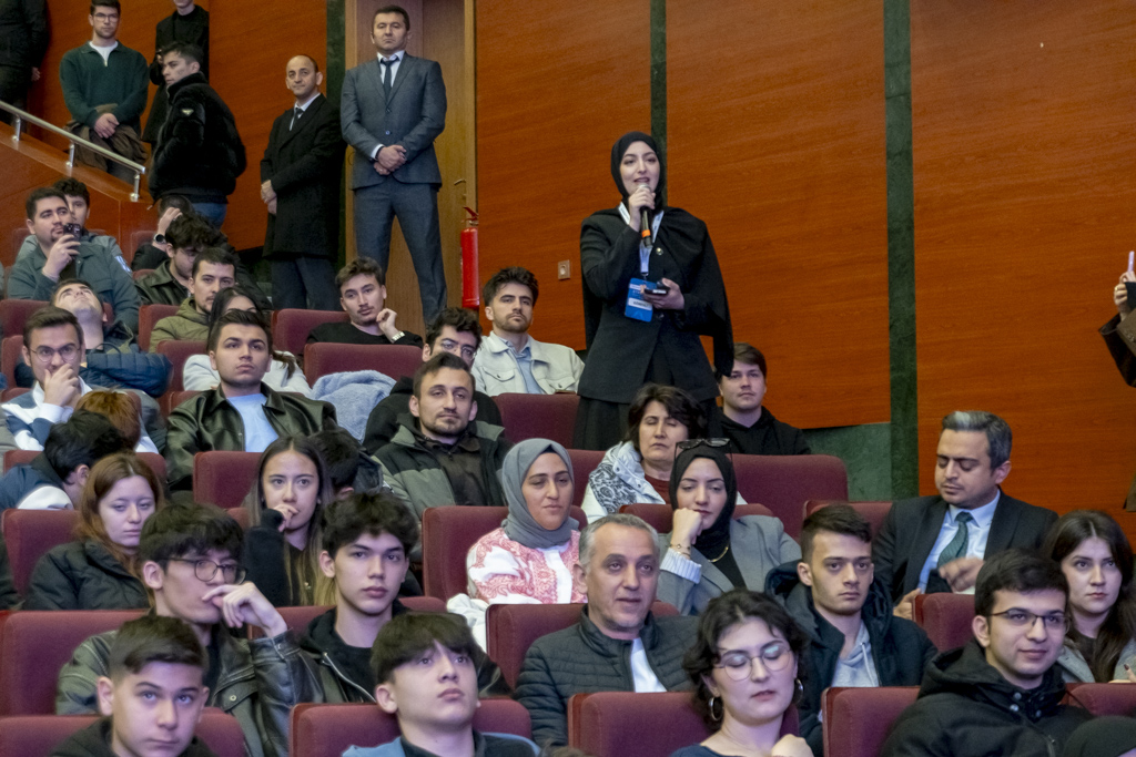Soru cevap bölümünde bir öğrencimizin ROKETSAN’a teknik gezi isteği üzerine Rektör Yiğit, 30’u Üniversitemiz öğrencisi olmak üzere toplam 50 öğrenciye ROKETSAN’a teknik gezi müjdesi verdi.