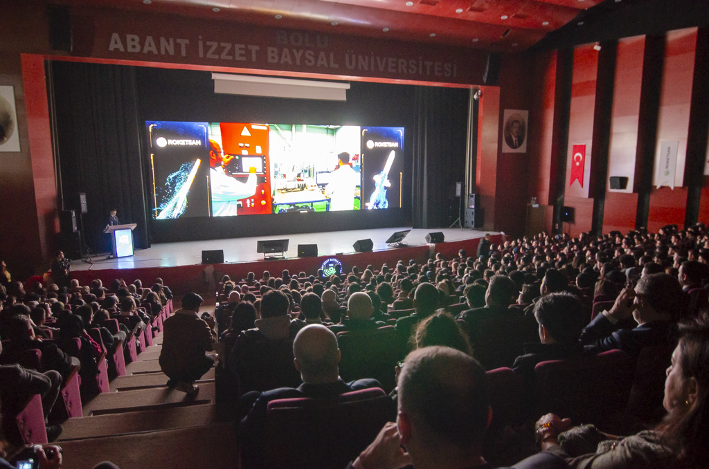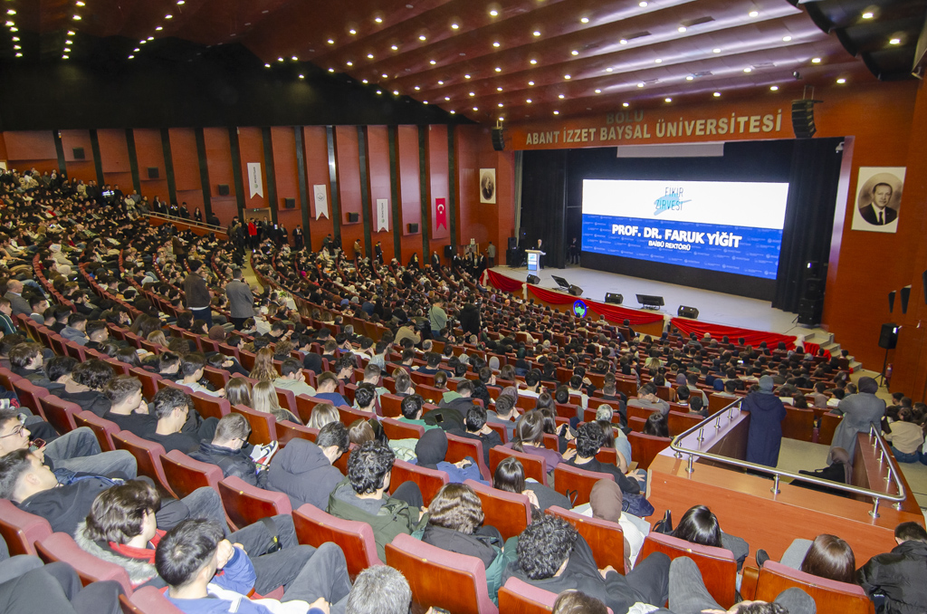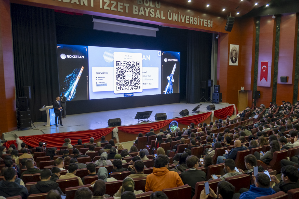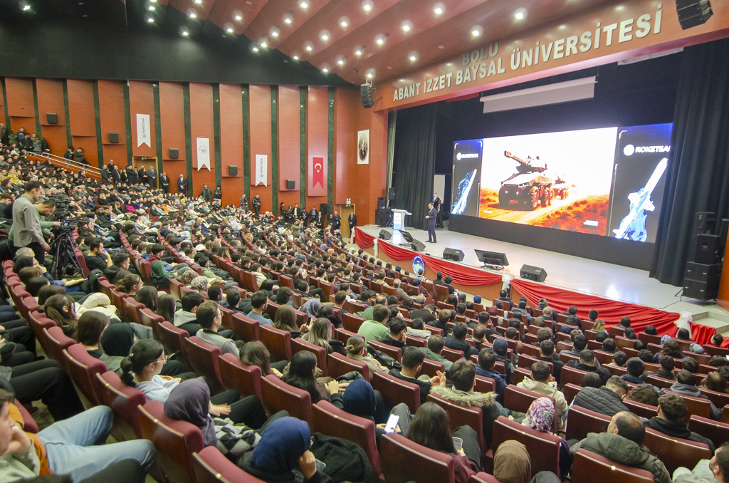 Fikir Zirvesi’nin esas itibariyle gençlerin hayallerine sahip çıkma çabasının bir parçası olduğuna vurgu yapan Rektör Yiğit, özetle “Murat beyin bugün burada bizlerle birlikte olması, savunma sanayimizin en kıymetli şirketlerinden biri olan ROKETSAN’ın siz gençlere, geleceğin mühendislerine ve savunma sanayi mensuplarına verdiği değerin en güzel göstergesidir. Zirve kapsamında ayrıca ROKETSAN insan kaynakları uzmanları tarafından staj, işe alım ve kariyer fırsatları hakkında bilgilendirilecek; kariyeriniz ve geleceğiniz için çok önemli fırsatlar elde edeceksiniz. ROKETSAN hakkında çok kıymetli bilgilere sahip olacaksınız. Biz Bolu Abant İzzet Baysal Üniversitesi olarak bu zirveyi üniversitemiz ve ülkemizin geleceği olan sizler için çok önemli bir fırsat olarak görüyoruz.” ifadelerini kullandı.
