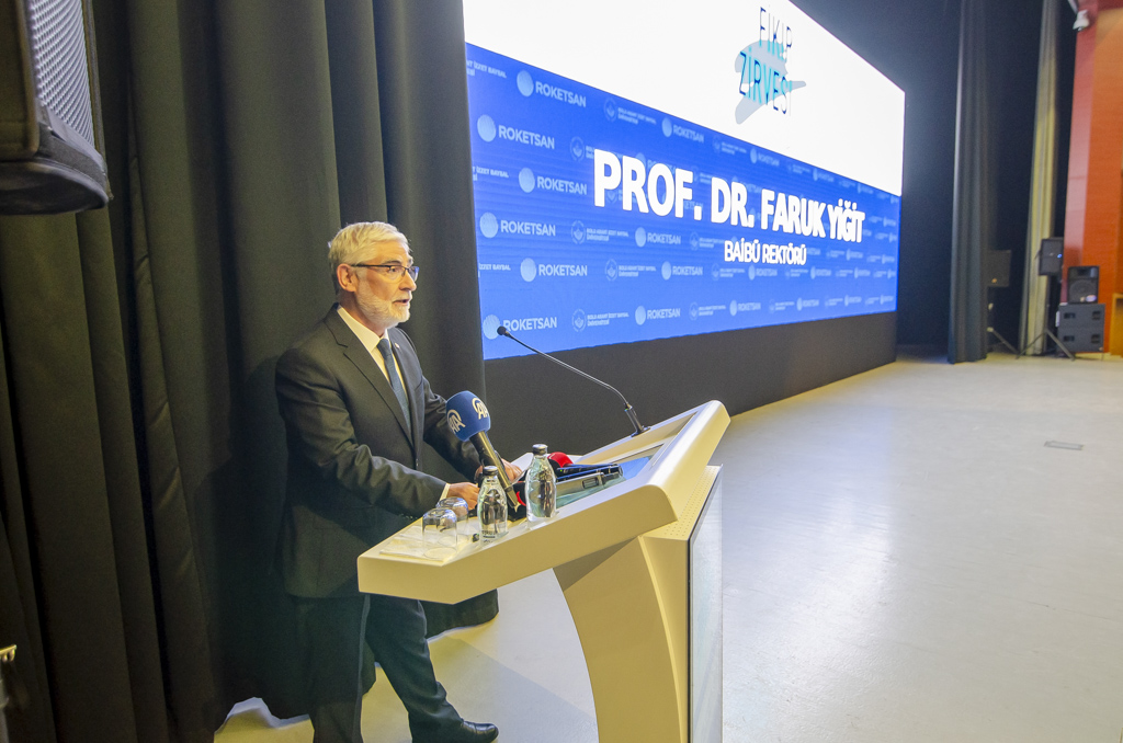 Sözlerine özetle “Kampüste bugün yüksek irtifa bir gün yaşayacağız. Bugün aramızda olan isim sadece teknoloji üretmiyor; aynı zamanda onu gökyüzüne hatta uzaya kadar taşıyan ekibe liderlik ediyor. Ülkemizin en önemli ve en stratejik kurumlarından biri olan ROKETSAN’ımızın Genel Müdürü.” diyerek devam eden Rektör Yiğit, “Belki O’nun konuşmasından sonra bazılarınız kariyer hedeflerini biraz daha yukarı çekecek; bazılarınız ‘Ben de bu alanda bir şeyler üretebilirim’ diye düşünecek. Muhtemelen hepimiz yaptığımız işlere daha farklı bir gözle bakmaya başlayacağız. Bugün burada sadece bir yönetici değil, aynı zamanda bir vizyonu dinleyeceğiz.” dedi.
