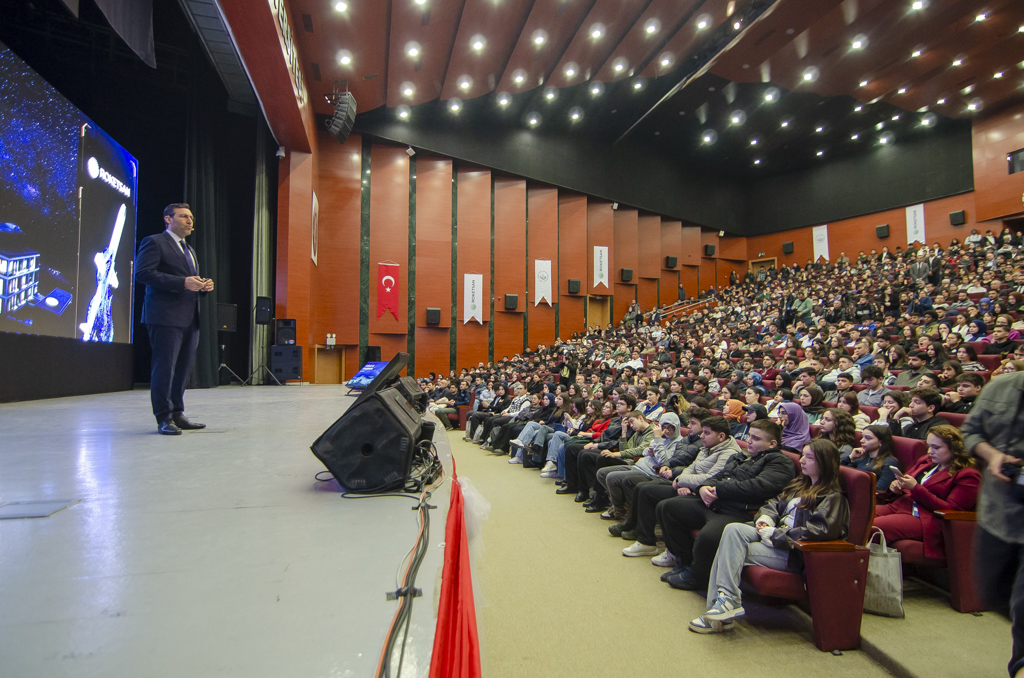 Rektörlüğümüz öncülüğünde “Bir Fikir, Bir Gelecek” temasıyla ilk kez düzenlenen Fikir Zirvesi programının ilk konuğu, Türkiye’nin savunma sanayisinin öncü firmalarından biri olan ROKETSAN’ın Genel Müdürü Murat İkinci oldu. İkinci, Türkiye’nin uzay ve savunma sistemleri alanında önemli rol üstlenen ROKETSAN’ın vizyoner proje ve hedeflerini gençlerle paylaştı.