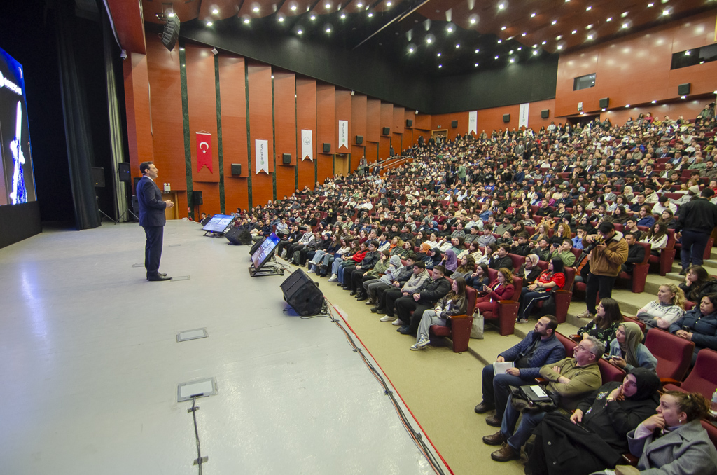 Saygı duruşu ve İstiklal Marşı’nın okunmasıyla başlayan programın açılış konuşmasını yapan Rektör Prof. Dr. Faruk Yiğit, Üniversitemiz ev sahipliğinde ilki düzenlenen Fikir Zirvesi programının içeriği hakkında öğrencilere bilgi vererek, özetle “Bundan sonra da Üniversitemizde ‘Bir Fikir, Bir Gelecek’ temasıyla gerçekleştireceğimiz Fikir Zirvesi seri programında, farklı alanlardan ilham veren isimler ile bir araya gelmeye devam edeceğiz. Bu buluşmalarımız ile daha önce bu yollardan geçmiş uzman kişilerden bir fikir, bir hayal edinmeyi amaçlıyoruz. Bugünkü Fikir Zirvemizin ilk konuğu olarak çok değerli bir ismi ağırlıyoruz. Kendisi hızla değişen ve dönüşen teknoloji dünyasında yalnızca bir yönetici değil, aynı zamanda yeniliğin ve vizyoner düşüncenin güçlü bir temsilcisi. İşleri sadece yönetmekle kalmayıp geleceği de şekillendirmeye çalışıyor. Bazı insanlar teknolojiyi kullanır, bazıları üretir, bazıları vardır ki oyunun kurallarını değiştirir. Murat ağabeyiniz tam olarak bu üçüncü gruptan.” diye konuştu.