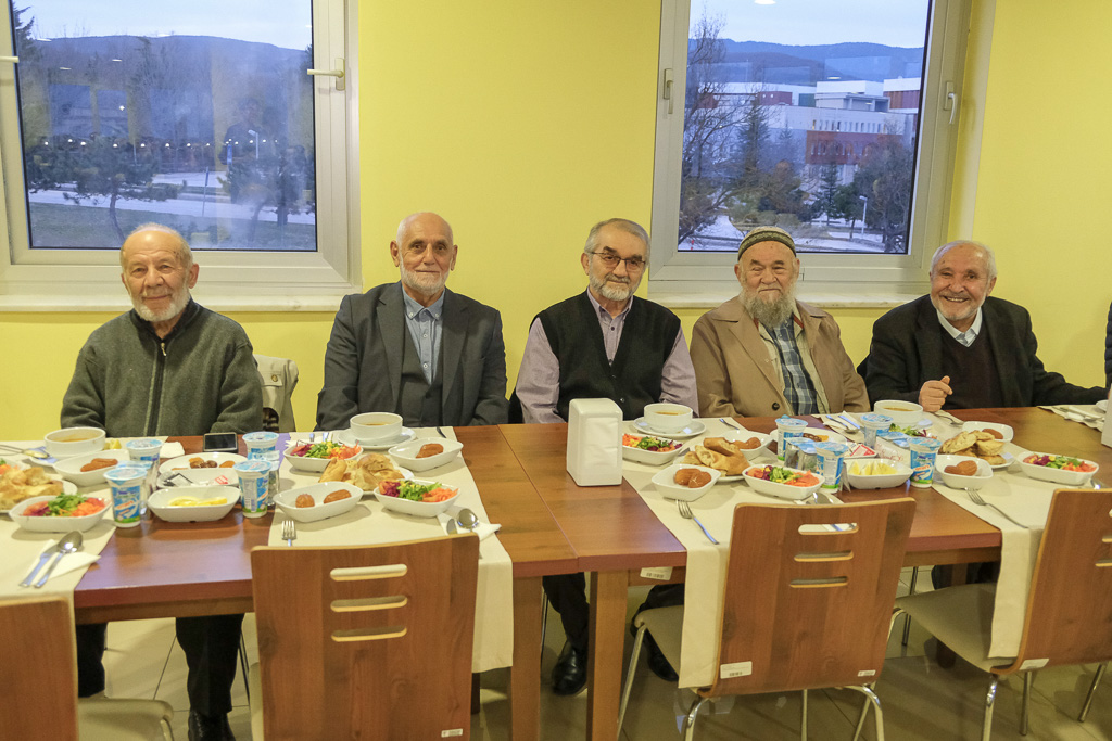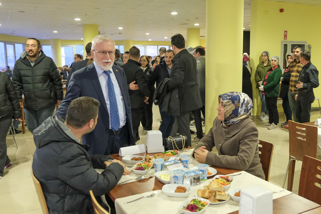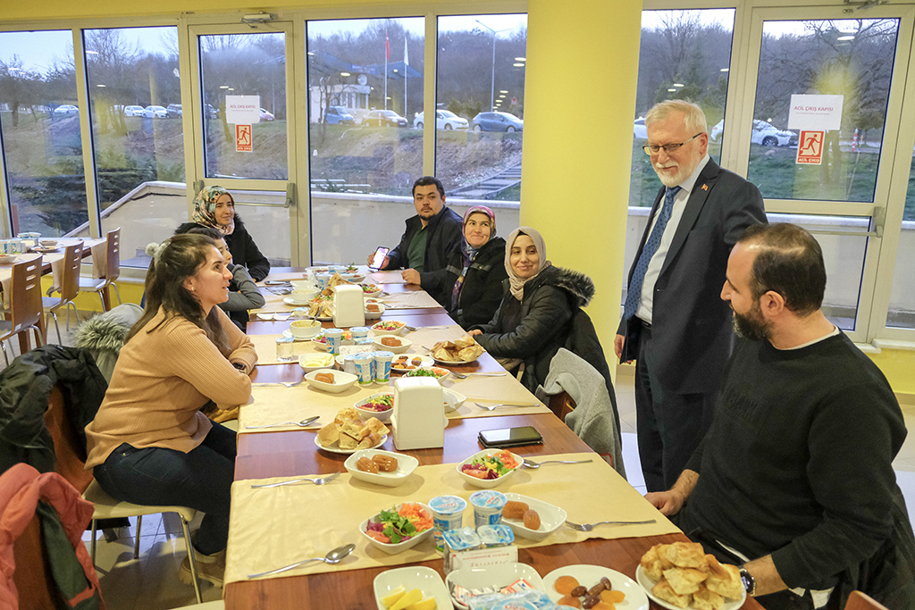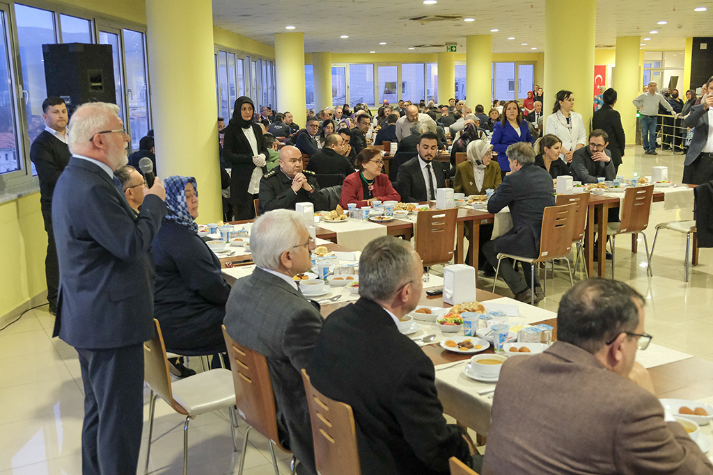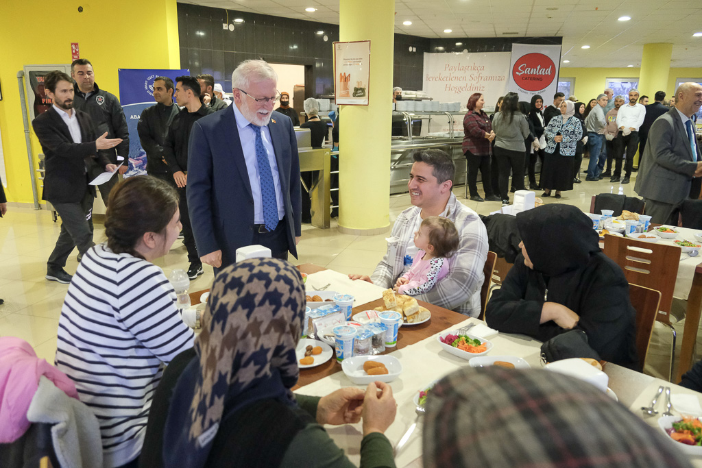 Rektörümüz Prof. Dr. Mustafa Alişarlı, iftar öncesinde masaları tek tek ziyaret ederek, konuklarla selamlaştı; hâl ve hatırlarını sordu. Rektör Alişarlı, iftar öncesi yaptığı konuşmada, konukların rahmet, bereket ve cehennem ayından kurtuluş olan Ramazan-ı Şerif’ini tebrik etti ve Gazze, Uygur, Myanmar gibi İslam ülkelerindeki Müslüman kardeşlerimizin de aynı bizler gibi nice Ramazan-ı Şerif’i huzur ve rahatlıkla ifa etmesini Yüce Allah’tan diledi.
