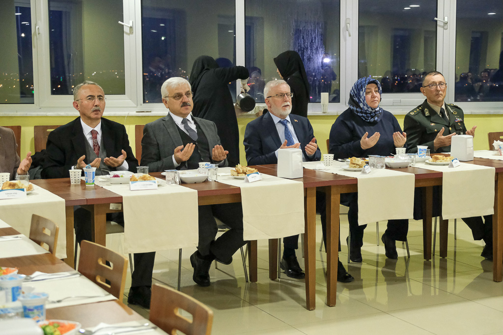 Öğrenci yemekhanesinde düzenlenen iftar programına; şehit aileleri ve gazilerin yanı sıra Bolu Valisi Erkan Kılıç, Bolu Milletvekilleri Yüksel Coşkunyürek ve Türker Ateş, Tugay ve Garnizon Komutan Vekili Tnk. Komd. Alb. Cavit Nartop, Bolu Abant İzzet Baysal Üniversitesi Rektörü Prof. Dr. Mustafa Alişarlı, Vali Yardımcısı Osman Demir, 27. Dönem Bolu Milletvekili Arzu Aydın, 20. Dönem Bolu Milletvekili Mustafa Yünlüoğlu, Rektör Yardımcıları Prof. Dr. Samettin Gündüz, Prof. Dr. Aydın Him ve Prof. Dr. Coşkun Karaca, Genel Sekreter İhsan Ağcan, ilçe belediye başkanları, dekanlar, akademik ve idari yönetici ve personel, il müdürleri, siyasi parti ve STK temsilcileri konuk edildi.