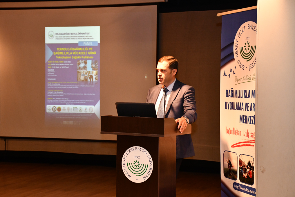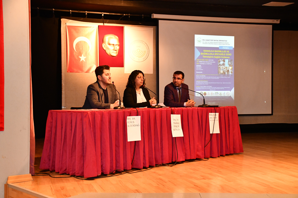 İzzet Baysal Kültür Merkezi Pembe Salonda gerçekleştirilen panelin açılış konuşmasını Rektör Yardımcısı Prof. Dr. Aydın Him yaptı. Günümüzde internete erişimin kolaylaşması ve sosyal medya platformlarının kontrolsüz bir şekilde yaygınlaşmasının eskiden beri bildiğimiz bağımlılık türlerine, sosyal medya bağımlılığı, oyun bağımlılığı gibi yeni bağımlılık türlerinin eklenmesine neden olduğunu vurgulayan Prof. Dr. Him, “İletişim teknolojilerinin gelişmesi sadece yeni teknoloji bağımlılık türlerinin ortaya çıkmasına neden olmadı; aynı zamanda tütün ve alkol gibi maddelere olan bağımlılığın da daha fazla yaygınlaşmasına yol açtı.” dedi. Üniversite olarak, her türlü bağımlılıkla mücadele etmek amacıyla Bağımlılıkla Mücadele Komisyonu ile Bağımlılıkla Mücadele Uygulama ve Araştırma Merkezi’ni kurduklarını söyledi.
