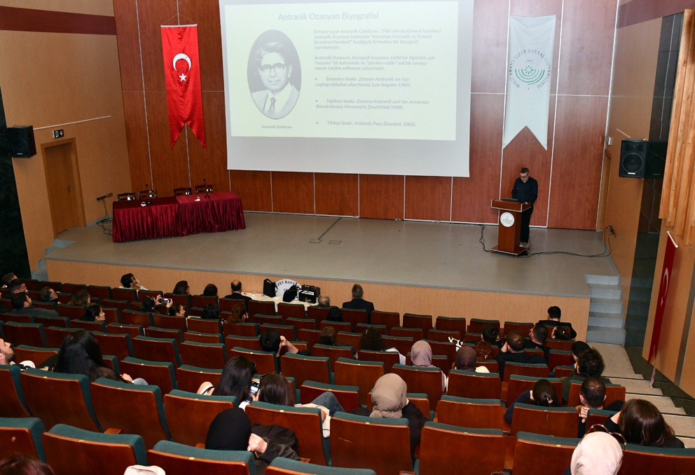 Üniversitemiz Fen Edebiyat Fakültesi tarafından “Türk-Ermeni İlişkilerinin Gelişimi” konulu panel düzenlendi. Prof. Dr. Nejla Günay, Ermeni halkının bugün bir arada olmak için Türk düşmanlığını referans aldığını; Dr. Erman Şahin ise, Türkiye’den tazminat ve toprak taleplerinin gerçekleştirilmesi amacıyla tarihin, Ermeni davasının bir aracı olarak görüldüğünü söyledi.