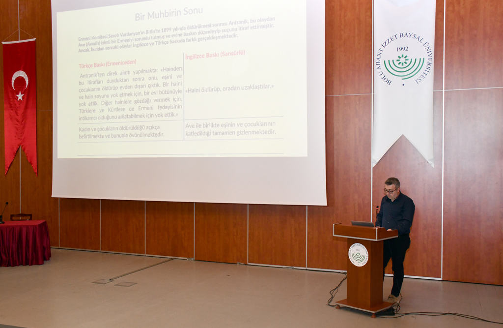 Dr. Şahin, özetle “Kuşkusuz bu kadar basite indirgenmiş bir tarih anlatısının arkasında siyasi hedef ve talepler yatmaktadır. Türkiye’den tazminat ve toprak taleplerinin gerçekleştirilmesi adına tarih, Ermeni davasının bir aracı olarak görülmektedir.” diye konuştu ve bu anlatılar kapsamında yazılmış kitapların İngilizce baskılarında uygulanan sansürleri belgeleriyle ortaya koydu.