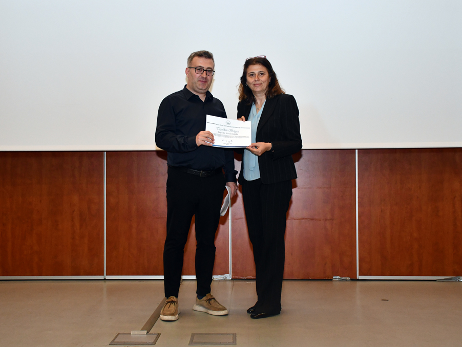 Soru cevap bölümünün ardından Dr. Erman Şahin’e Fen Edebiyat Fakültesi Dekanı Prof. Dr. Nuray Özdemir Tiryaki tarafından teşekkür belgesi takdim edildi.