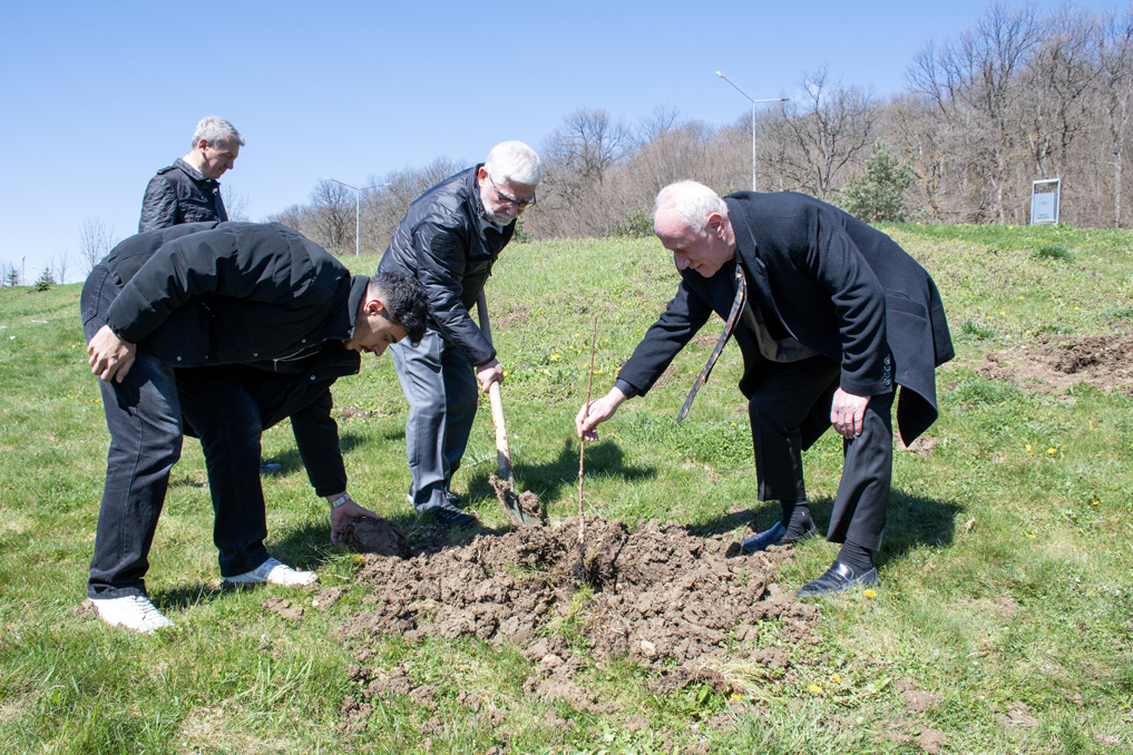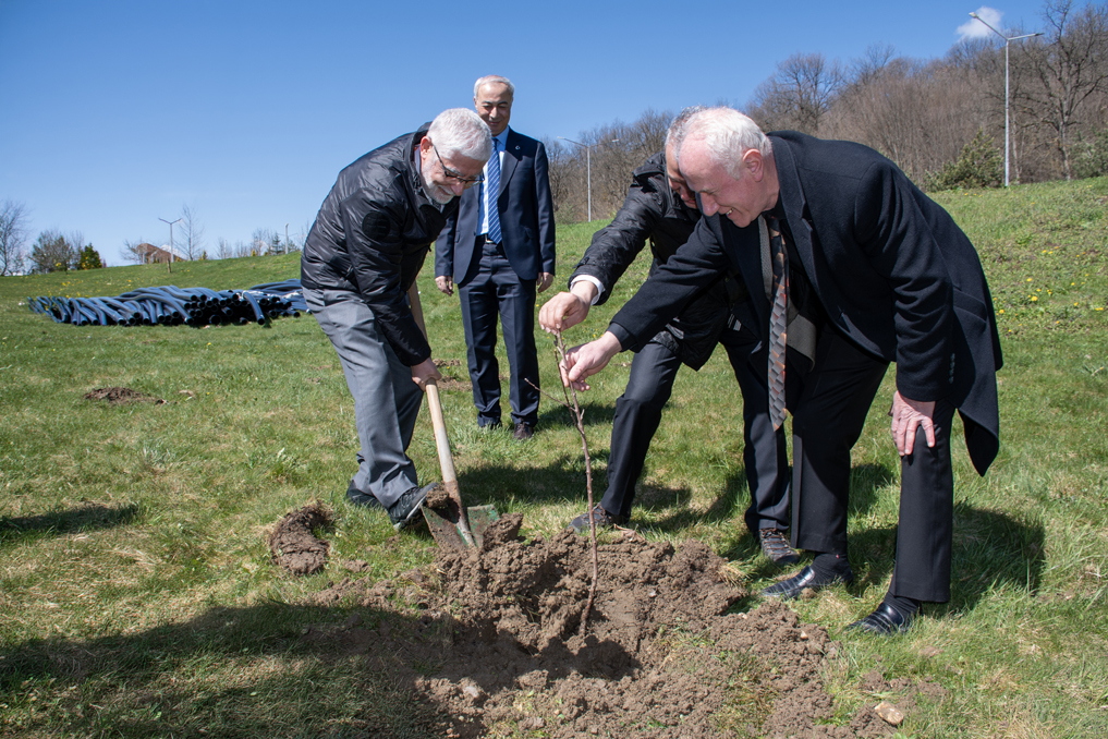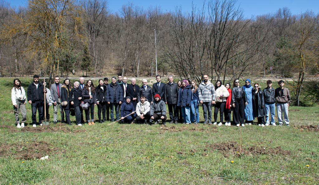 Rektörlük binası ile Prof. Dr. Fuat Sezgin Kütüphanesinin arkasındaki rekreasyon alanına 35 elma, 8 kiraz ve 9 dut ağacı fidanı dikildi.