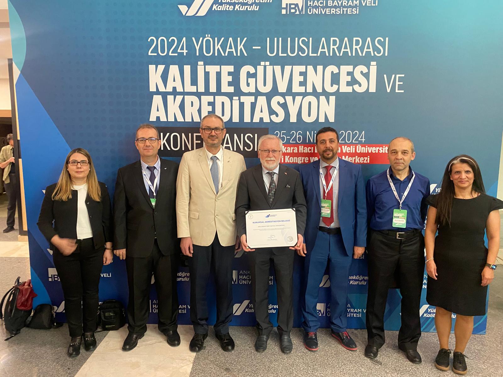 Üniversitemizin almaya hak kazandığı Kurumsal Akreditasyon belgesi, Ankara Hacı Bayram Veli Üniversitesi’nde düzenlenen 2024 YÖKAK Uluslararası Kalite Güvencesi ve Akreditasyon Konferansı’nda YÖK Başkanı Prof. Dr. Erol ÖZVAR ve YÖKAK Başkanı Prof. Dr. Ümit KOCABIÇAK tarafından Rektörümüz Prof. Dr. Mustafa ALİŞARLI’ya takdim edildi.