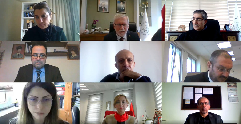 28 Aralık 2020’de saat 10.00-11.00 arasında Rektör Prof. Dr. Mustafa Alişarlı ve Rektör Yardımcıları Prof. Dr. Kamil Gürel, Prof. Dr. Aydın Him ve Prof. Dr. Samettin Gündüz ile yapılan görüşmede ilk olarak 2017 Kurumsal Geri Bildirim Raporunda üniversitemizin güçlü olarak belirtilen yanlarında değerlendirmeden bu yana ne tür değişiklikler olduğu, üniversite yönetiminin kalite güvence sistemlerine verdiği önem ve üniversite üst yönetimindeki görev dağılımı, üniversitemizin araştırma üniversitesi aday adaylığındaki motivasyon gibi konular konuşuldu.