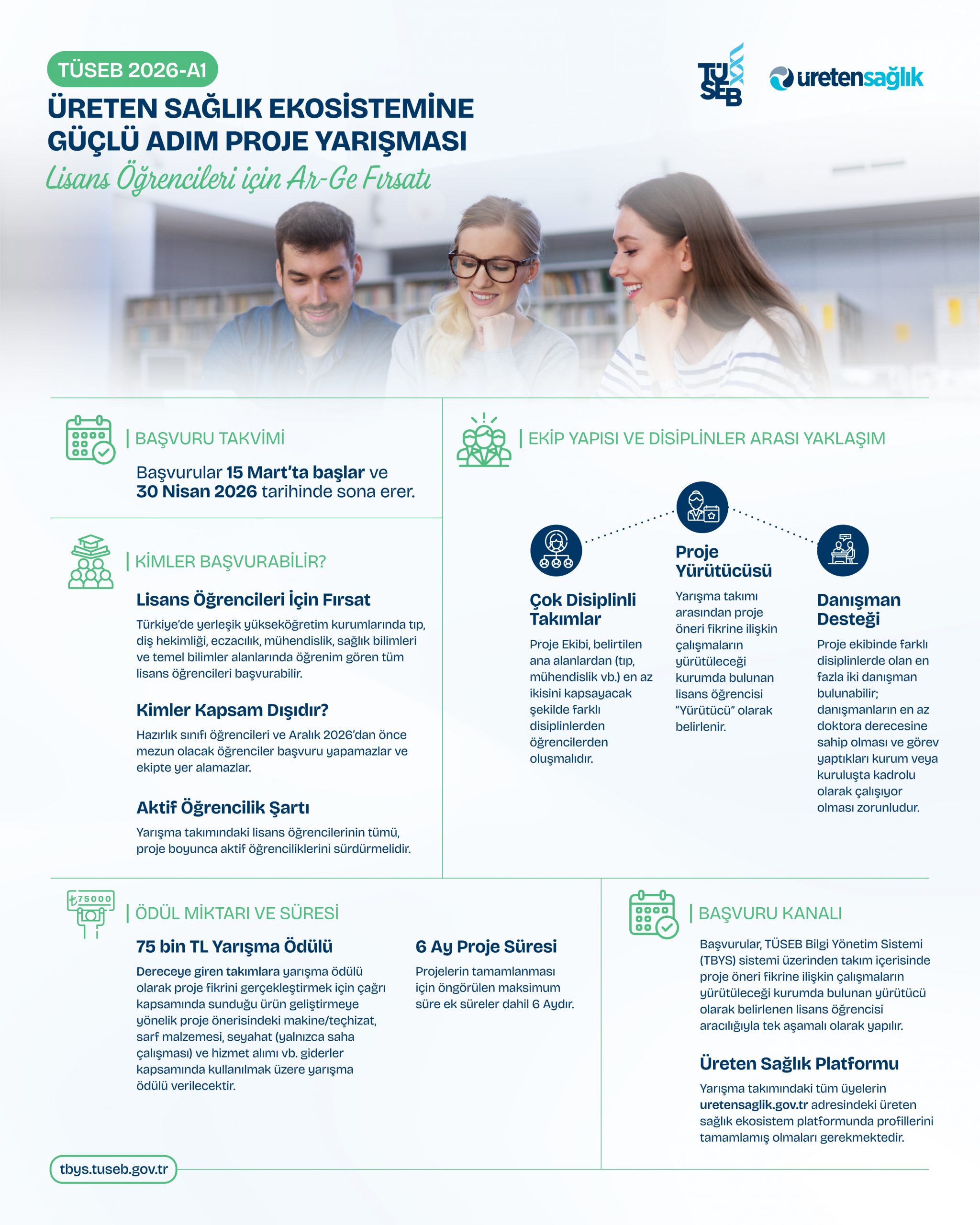 Üniversitelerde öğrenim görmekte olan lisans öğrencileri tarafından tıp, diş, eczacılık, veterinerlik, mühendislik, sağlık bilimleri ve temel bilimler alanından en az ikisini kapsayacak şekilde oluşturulan ekibin kısa süreli özgün ve yenilikçi araştırma proje fikri üreterek Ar-Ge ekosistemine dahil olması için teşvik edilmesi amaçlanmaktadır. Böylece lisans öğrencilerinin akademik çalışmalarına ve bilimsel araştırmalarına lisans düzeyinden itibaren başlamalarına olanak sağlanması hedeflenmektedir.