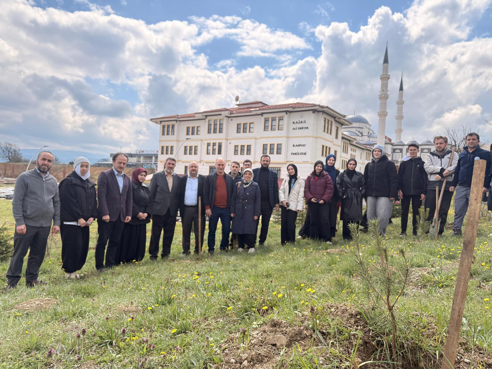 Mevlid programının ardından, vefat eden İlahiyat Fakültesi hazırlık sınıfı öğrencisi Osman Nuri Çelik’in adını yaşatmak amacıyla İlahiyat Fakültesi bahçesinde fidan dikim töreni gerçekleştirildi.