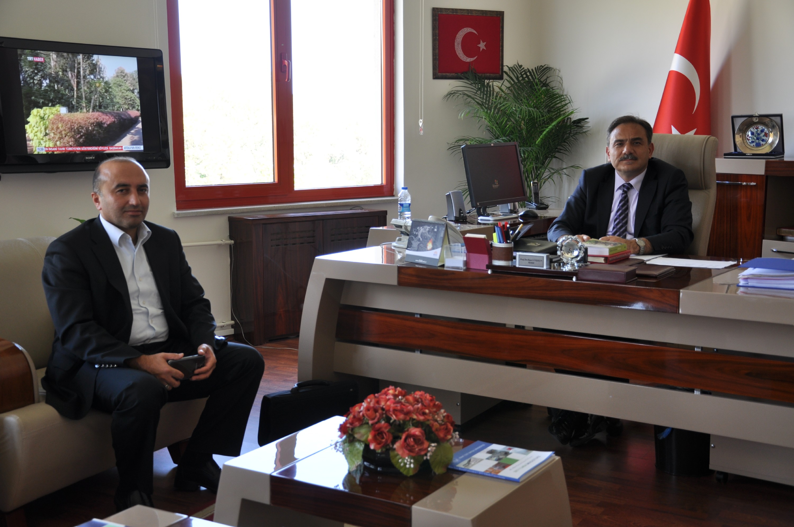 Yaşar Çelik Vakfı Başkanı (YAÇEV) Ahmet Kızıltan, Abant İzzet Baysal Üniversitesi (AİBÜ) Rektörü Prof. Dr. Hayri Coşkun’a nezaket ziyaretinde bulundu. Rektör Coşkun ve Kızıltan, Üniversitemizin Yeniçağa’daki Yaşar Çelik Meslek Yüksekokulu ile ilgili görüş alışverişinde bulundular.