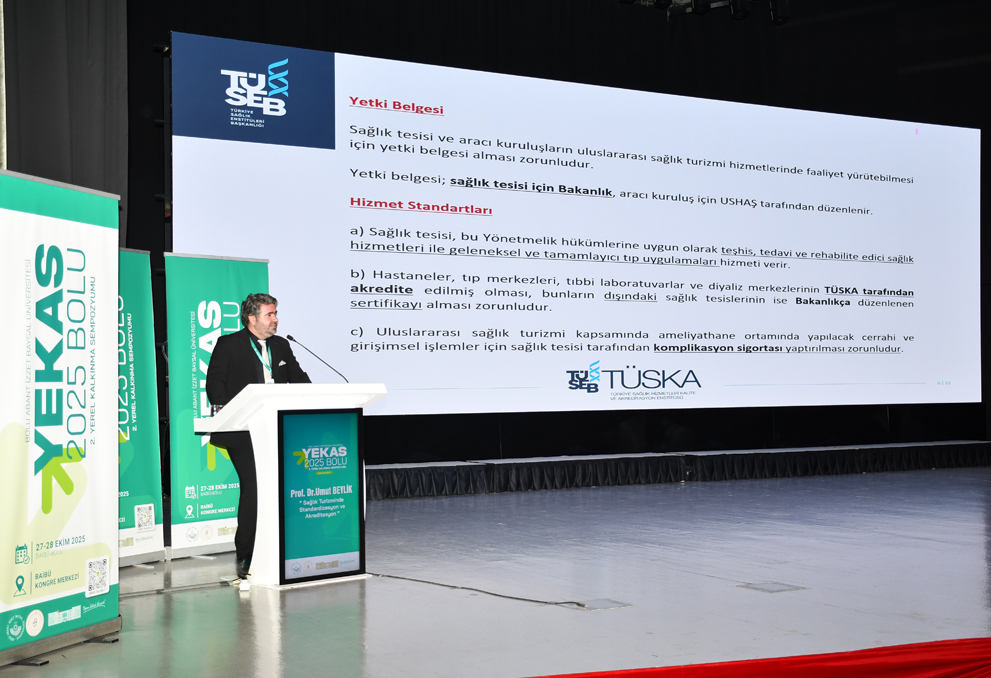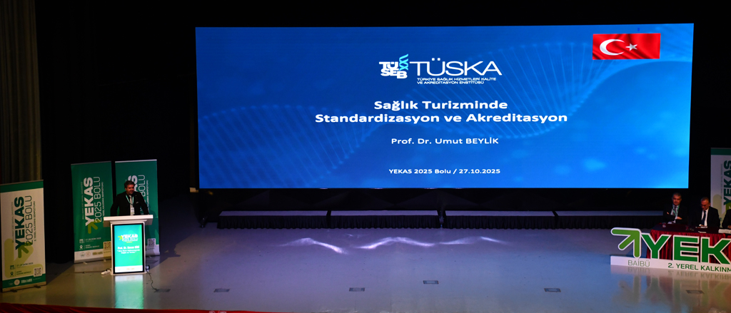 Sağlık Bilimleri Üniversitesi Öğretim Üyesi Prof. Dr. Umut Beylik ise, “Sağlık Turizminde Standardizasyon ve Akreditasyon” konulu sunum yaptı. Sağlık turizmi alanında akreditasyonun öneminden bahseden Beylik, TÜSKA faaliyetleri ve akreditasyon çalışmalarını anlattı ve özetle “TÜSKA’dan bahsedecek olursak biliyorsunuz sağlıkta dönüşüm programı 2003 yılında başlamıştı. Sağlıkta kalite standartları ilk defa 2005 yılında ortaya çıktı ve bu kapsamda yapılan merkezi değerlendirmeler kapsamında ülkemizde makro anlamda önemli bir kalite kültürü gelişti. 2012 yılında Türkiye akreditasyon çalışmalarına başladı. TÜSKA’nın 5 akreditasyon programı var: hastaneler, laboratuvarlar, diyaliz merkezleri, ağız ve diş sağlığı merkezleri.” dedi; ayrıntılar hakkında bilgi verdi.
