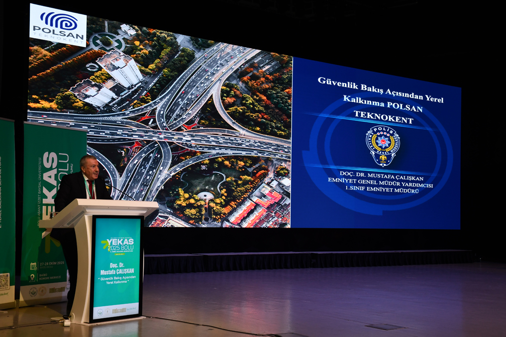 Emniyet Genel Müdür Yardımcısı ve 1. Sınıf Emniyet Müdürü Doç. Dr. Mustafa Çalışkan “Güvenlik Bakış Açısından Yerel Kalkınma POLSAN TEKNOKENT” konulu sunum yaptı. POLSAN’ın 150 bin polisin OYAK benzeri emekli fon kuruluşu olduğunu kaydeden Çalışkan, özetle “POLSAN TEKNOKENT kurmaya karar verdik. Cumhurbaşkanımızın 20 Mart 2025’teki onayıyla hayata geçmeye başladı. Mimari proje yarışması tamamlandı; birkaç ay sonra inşallah temelini atacağız. İletişimden siber güvenliğe, bilişim teknolojilerinden yapay zekâ destekli uygulamalara, biyometrik sistemlerden afet ve kriz yönetim teknolojilerine kadar güvenlik sistemlerinin birçok kritik alanda yenilikçi çözümler geliştirmesine ev sahipliği yapmasını hedefliyoruz.” diye konuştu.