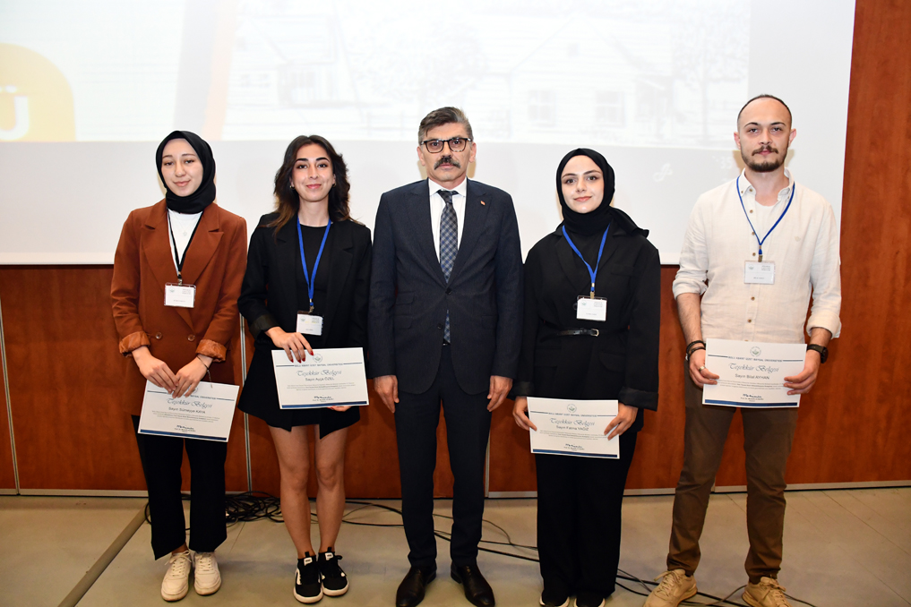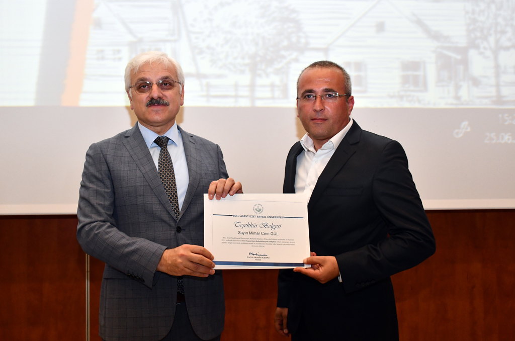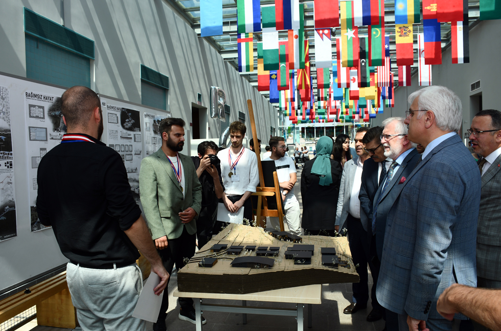 Kılıç’ın konuşmasını bitirmesinin ardından projede görev alanlara belgeleri verildi. Akabinde Üniversitemiz Mimarlık Fakültesi Mimarlık Bölümü öğrencilerinin “Bağımlılıkla Mücadele” konusunda çalıştıkları mezuniyet projesi atölye çalışmalarından oluşan “Yeni Yaşam Köyü – Rehabilitasyon Kampüsü” adlı sergi gezildi.