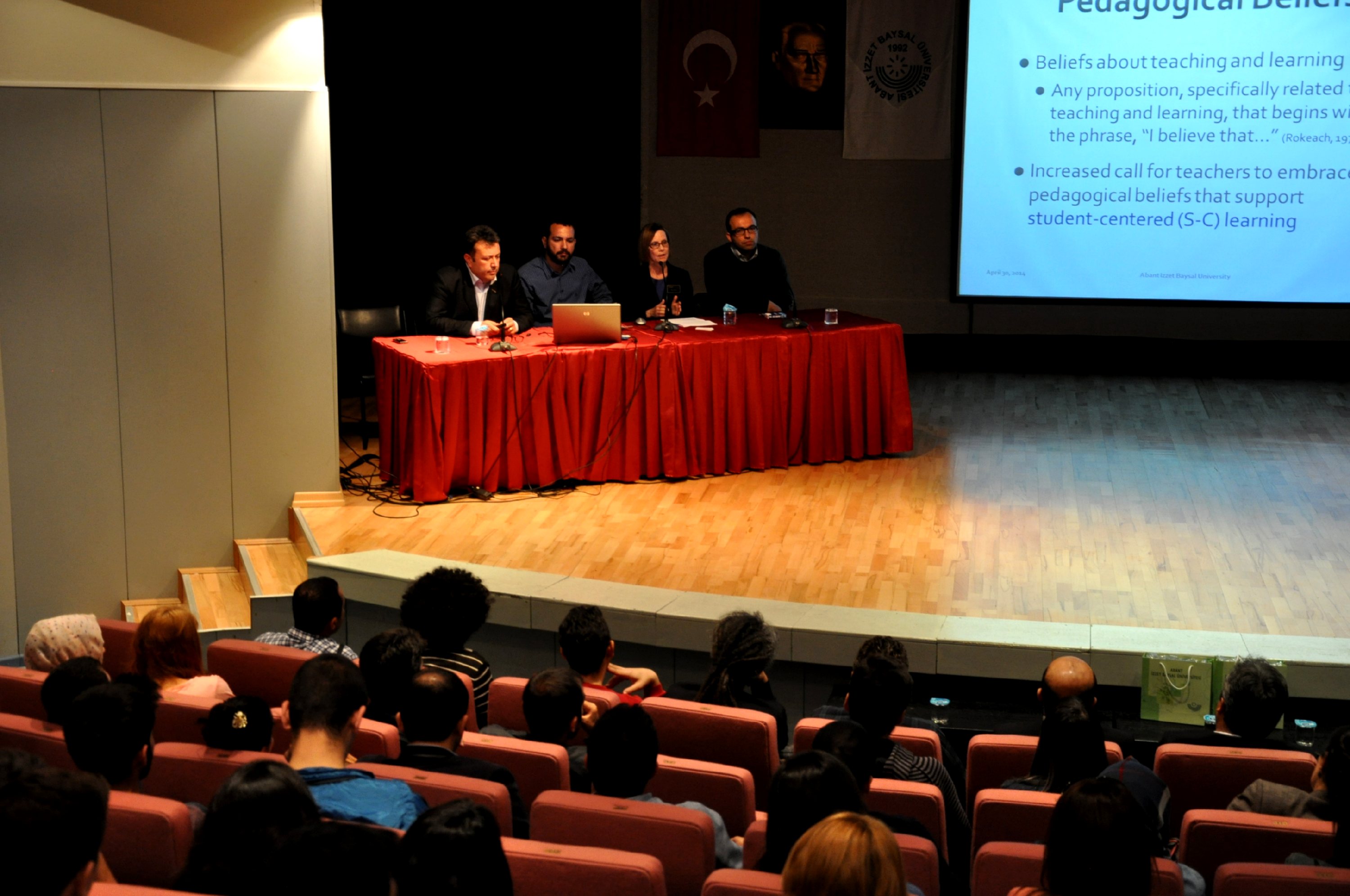 AİBÜ Eğitim Fakültesi Bilgisayar ve Öğretim Teknolojileri Eğitimi Bölümü ile Fen Bilgisi Eğitimi AD tarafından İzzet Baysal Kültür Merkezinde ‘Eğitimde Yeni Trendler ve Teknoloji Entegrasyonu’ konulu panel düzenlendi. Panelde, eğitim teknolojileri ve bu teknolojilerin entegrasyonu sürecinde öğretmen eğitimi konusunda Dünya’daki önemli araştırmacılardan biri olan ABD’li akademisyen Prof. Dr. Peggy Ertmen, öğrenci merkezli eğitim veren öğretmenlerin teknolojiyi kullanma ihtimallerinin daha yüksek olduğunu ayrıntılarıyla anlattı.