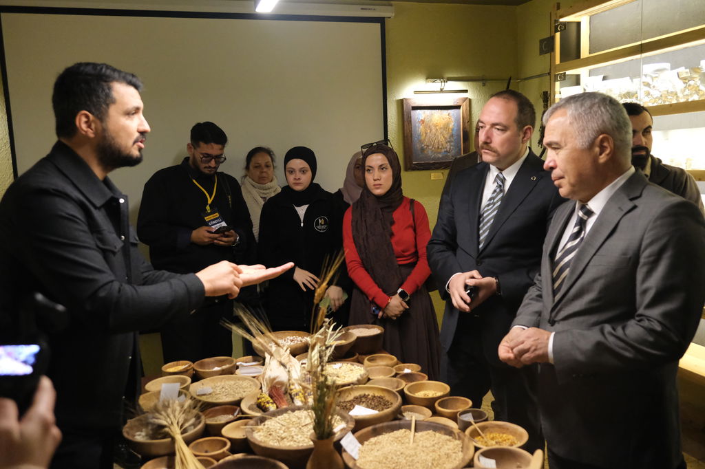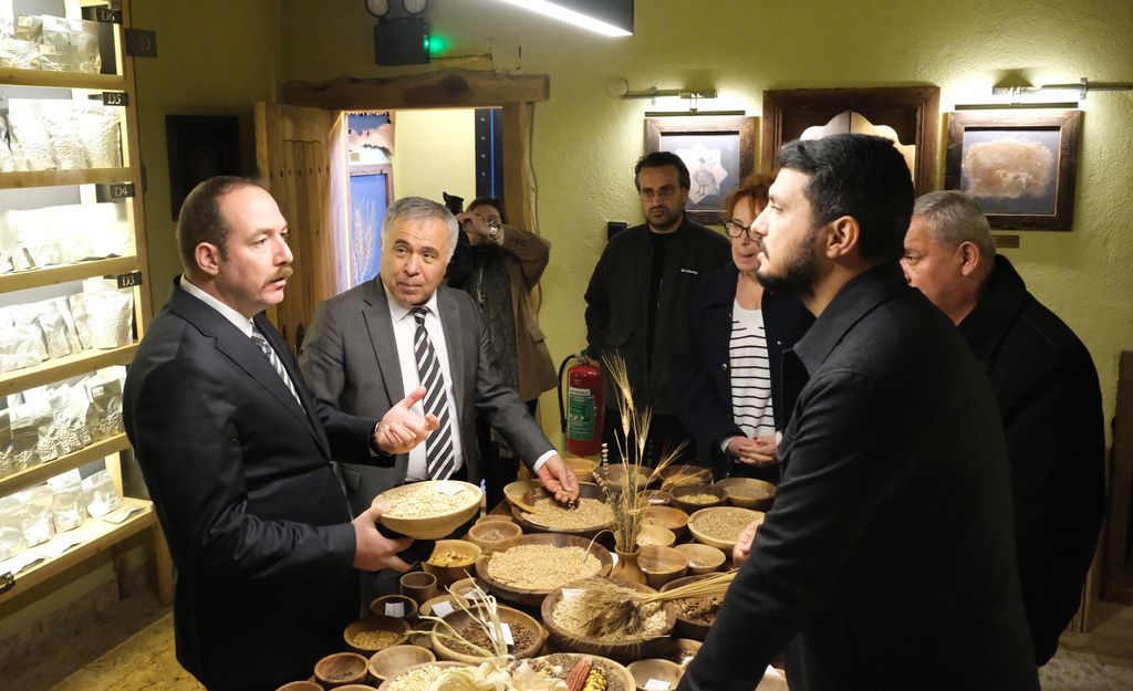 Ardından Iza buğdayının yolculuğunu anlatan Iza sergisi gezildi. Sergide; “Yaklaşık 12 bin yıl önce Karacadağ’da evcilleştirilen Iza buğdayı, insanlık tarihinin tarım bitkilerindendir. Bereketli Hilal’den başlayan bu yolculuk Anadolu’nun derinliklerine kadar uzanmıştır. 10 Kasım 2022 tarihinde Bolu’nun Mengen ilçesinde yeniden toprakla buluşmuştur. Tohum Ambarı aracılığı ve Gentaş A.Ş. desteğiyle korunmakta ve çoğaltılmaktadır. 14 kromozoma sahiptir. Yüzde 17,2 protein içeriğiyle besleyiciliği yüksektir. Düşük gluten içeriği sayesinde kolay sindirilir; hassas bünyeler için uygundur. Kavuzlu yapısı, tane koruması sağlar. Iza, yalnızca bir tarım ürünü değil, besin değeri yüksek, kültürel ve genetik hafıza taşıyan kadim bir mirastır.” ifadelerine yer verildi.
